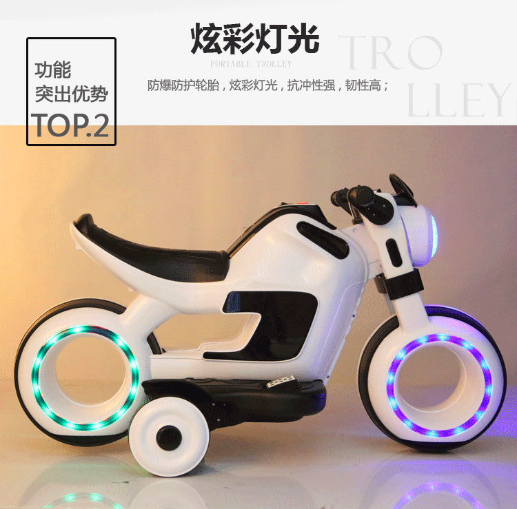 新款儿童电动车摩托车 潮流儿童车辅助轮防侧翻小孩玩具摩托车