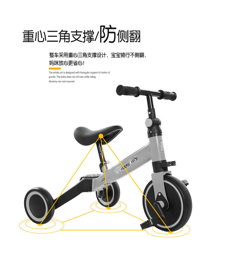 三轮脚踏车 男女宝宝学步车 儿童三轮车1-5周岁三合一儿童滑行车