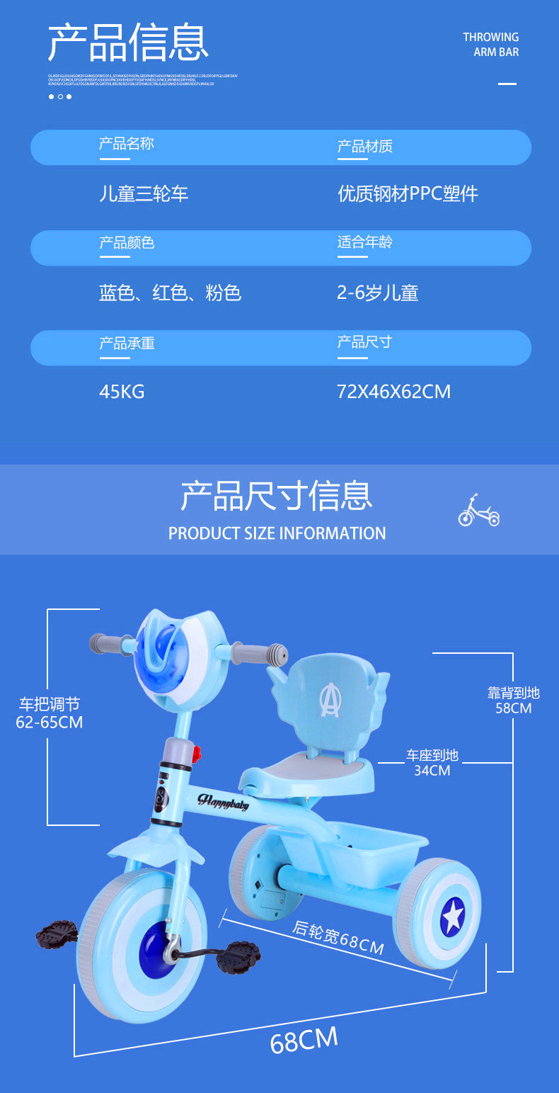 2-6岁童车脚蹬防侧翻带斗宝宝三轮车儿童自行车儿童三轮车脚踏车