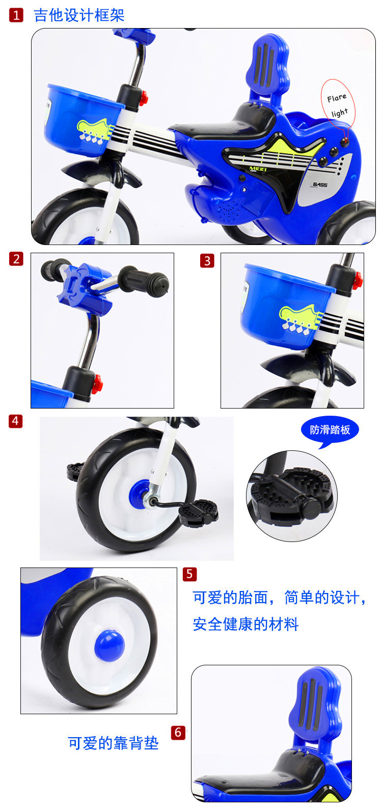 新款脚踏车2-6岁小孩三轮车童车防侧翻脚蹬车灯光音乐儿童三轮车