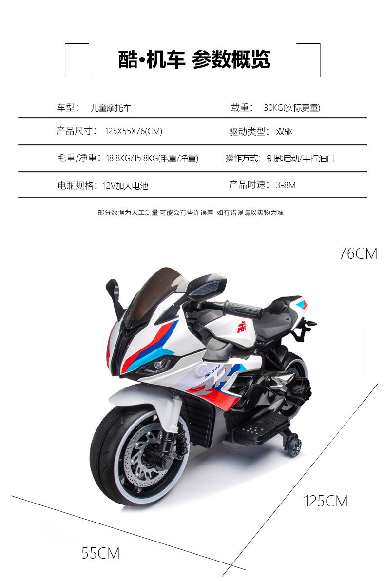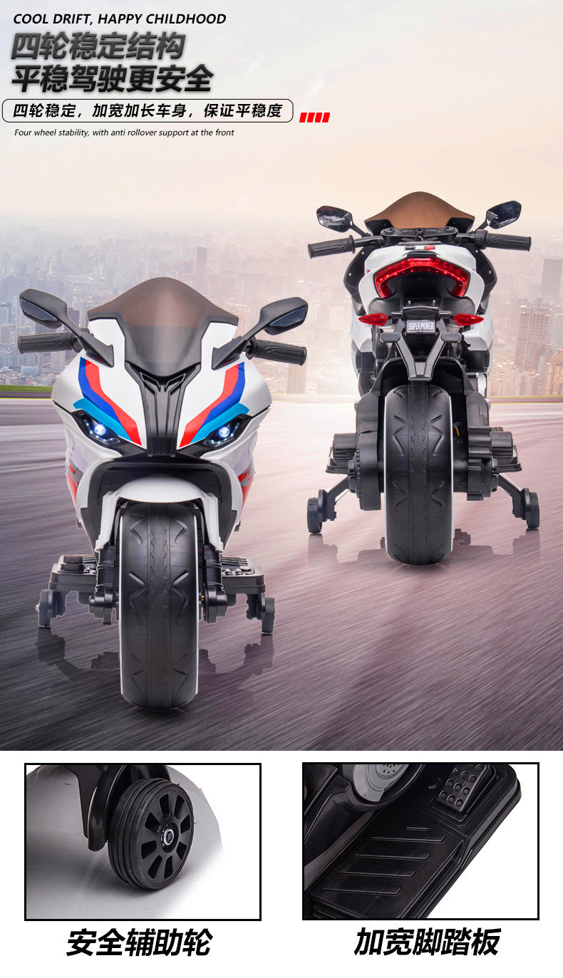 儿童电动摩托车超大号可坐双人男女小孩2-8-12岁宝宝充电瓶玩具车