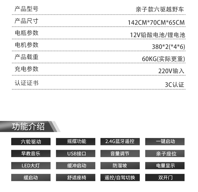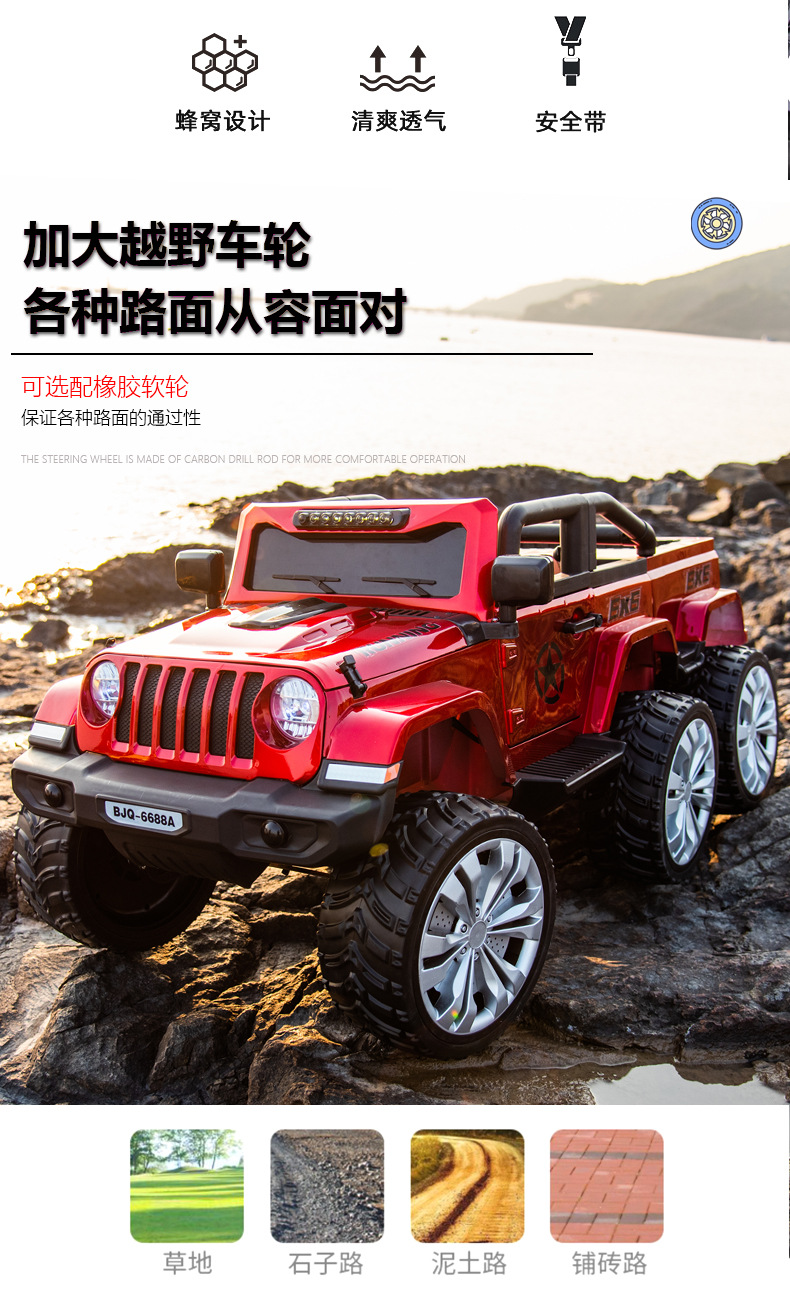 汽车电动车贴纸六轮儿童越野遥控玩具车大人贴画宝宝男女小孩童车