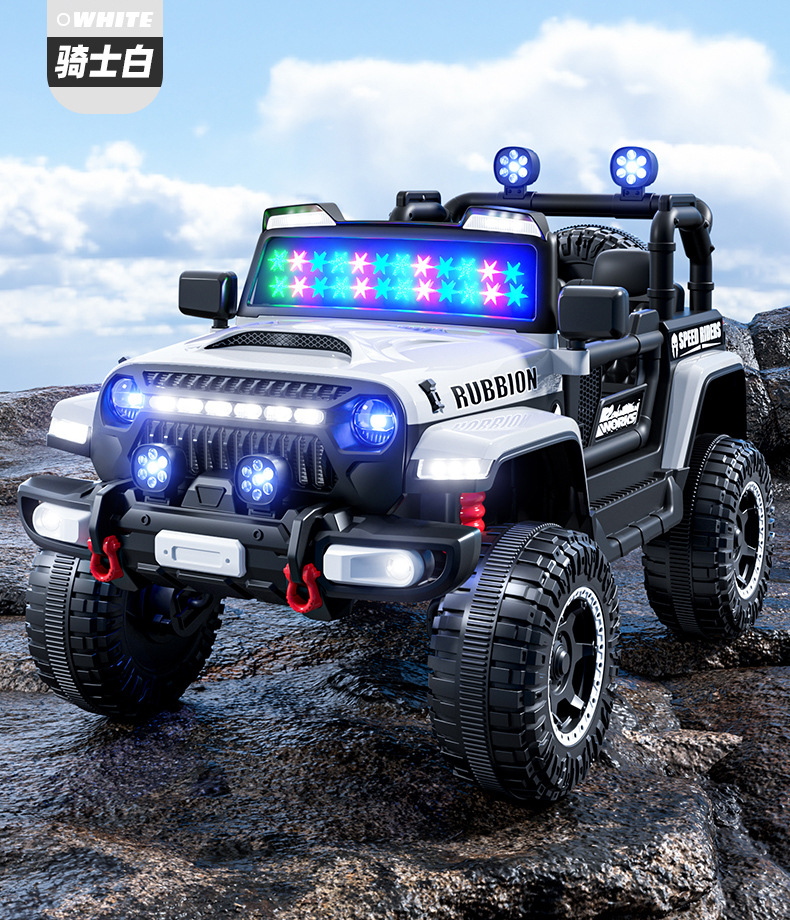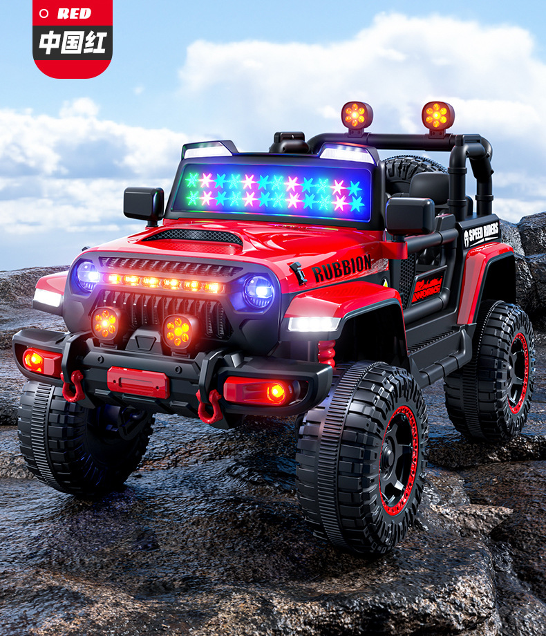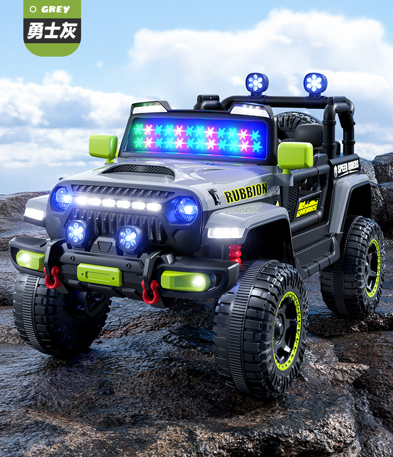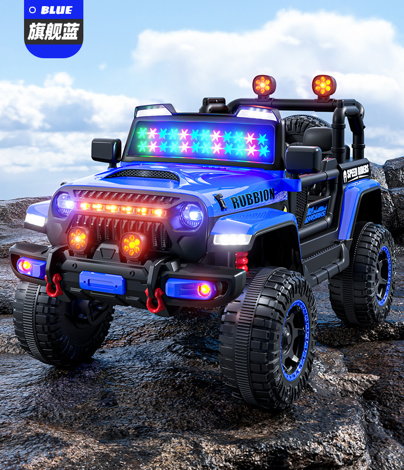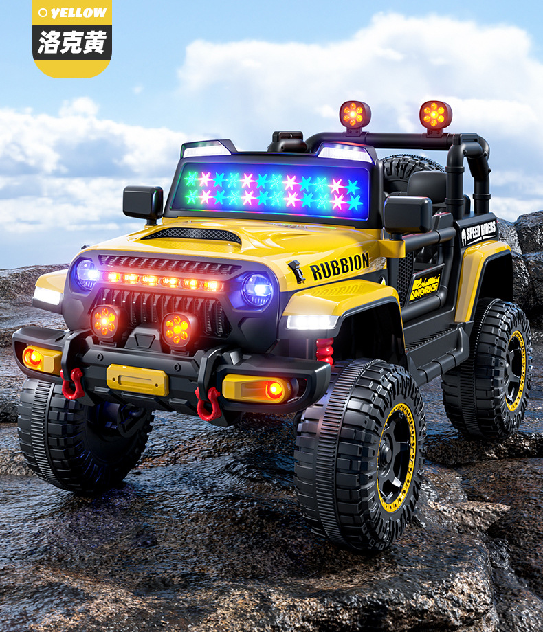 新款儿童四轮越野汽车电动车可坐人带遥控早教遥控摇摆小孩玩具车