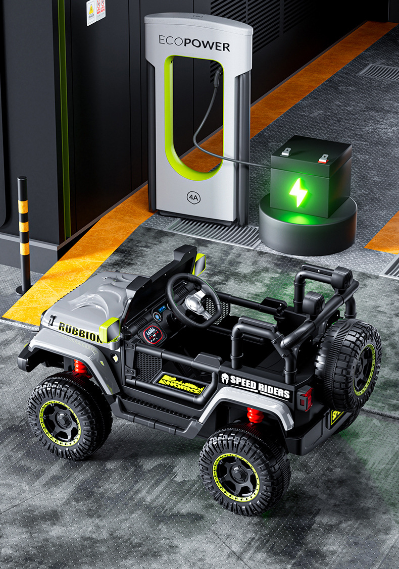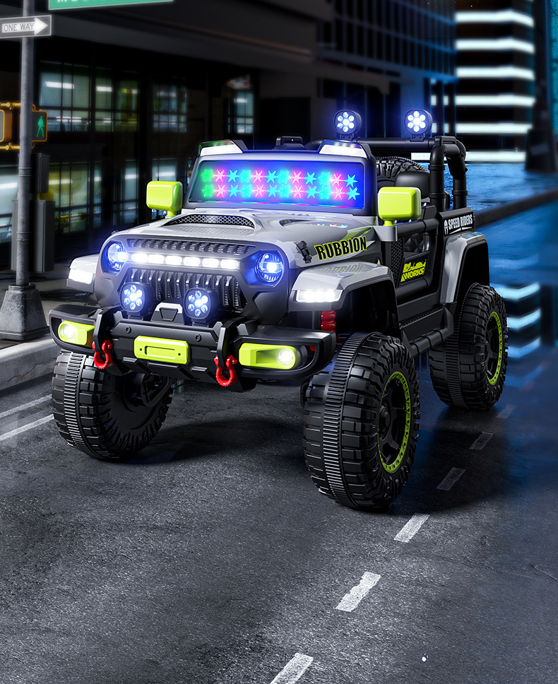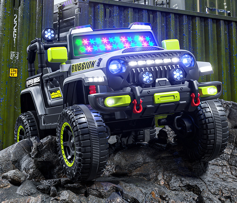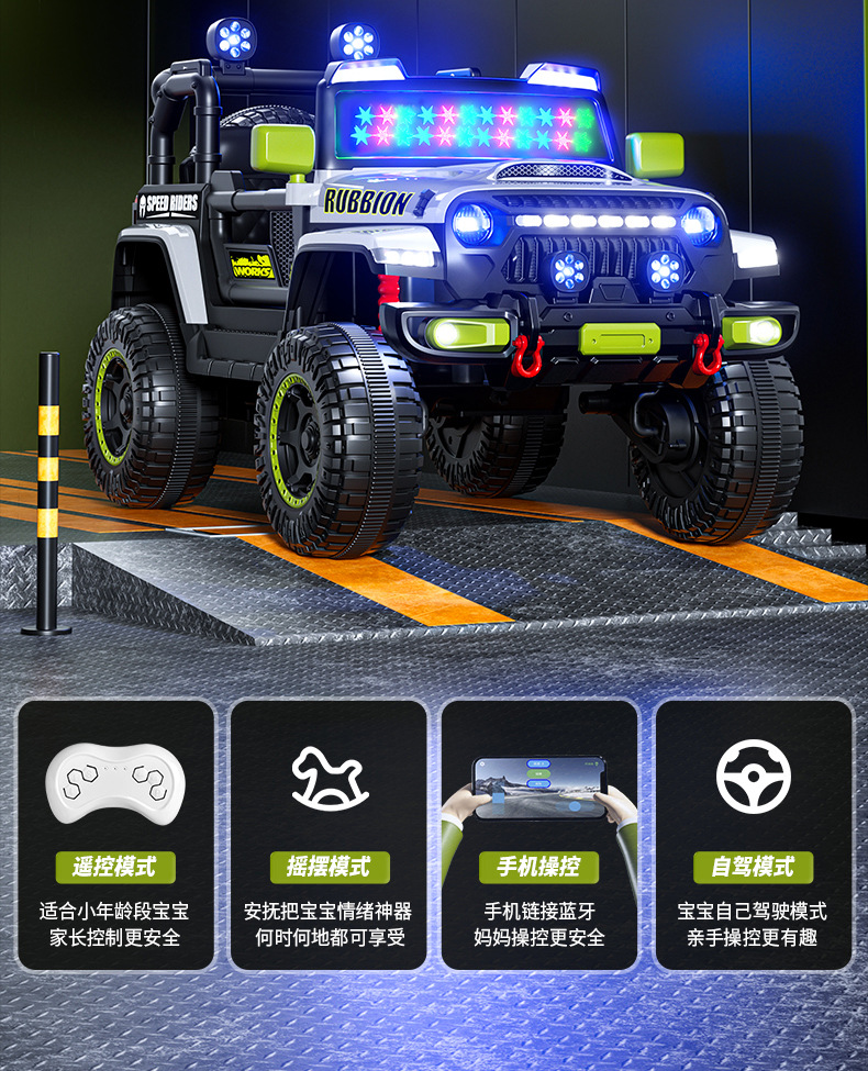 新款儿童四轮越野汽车电动车可坐人带遥控早教遥控摇摆小孩玩具车