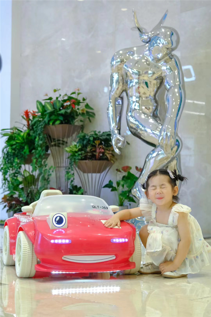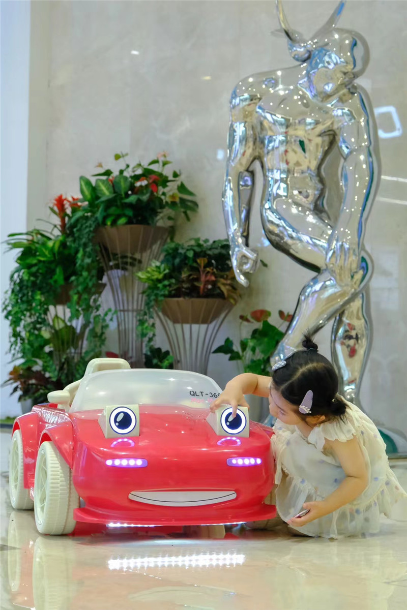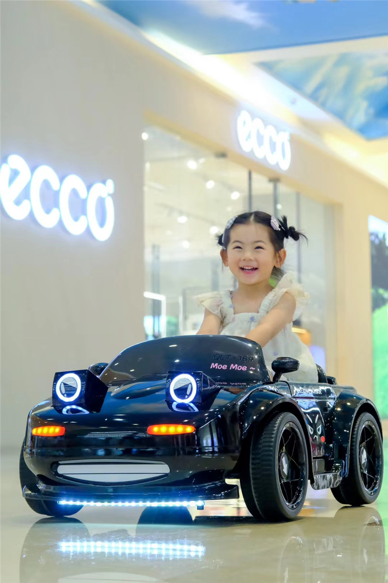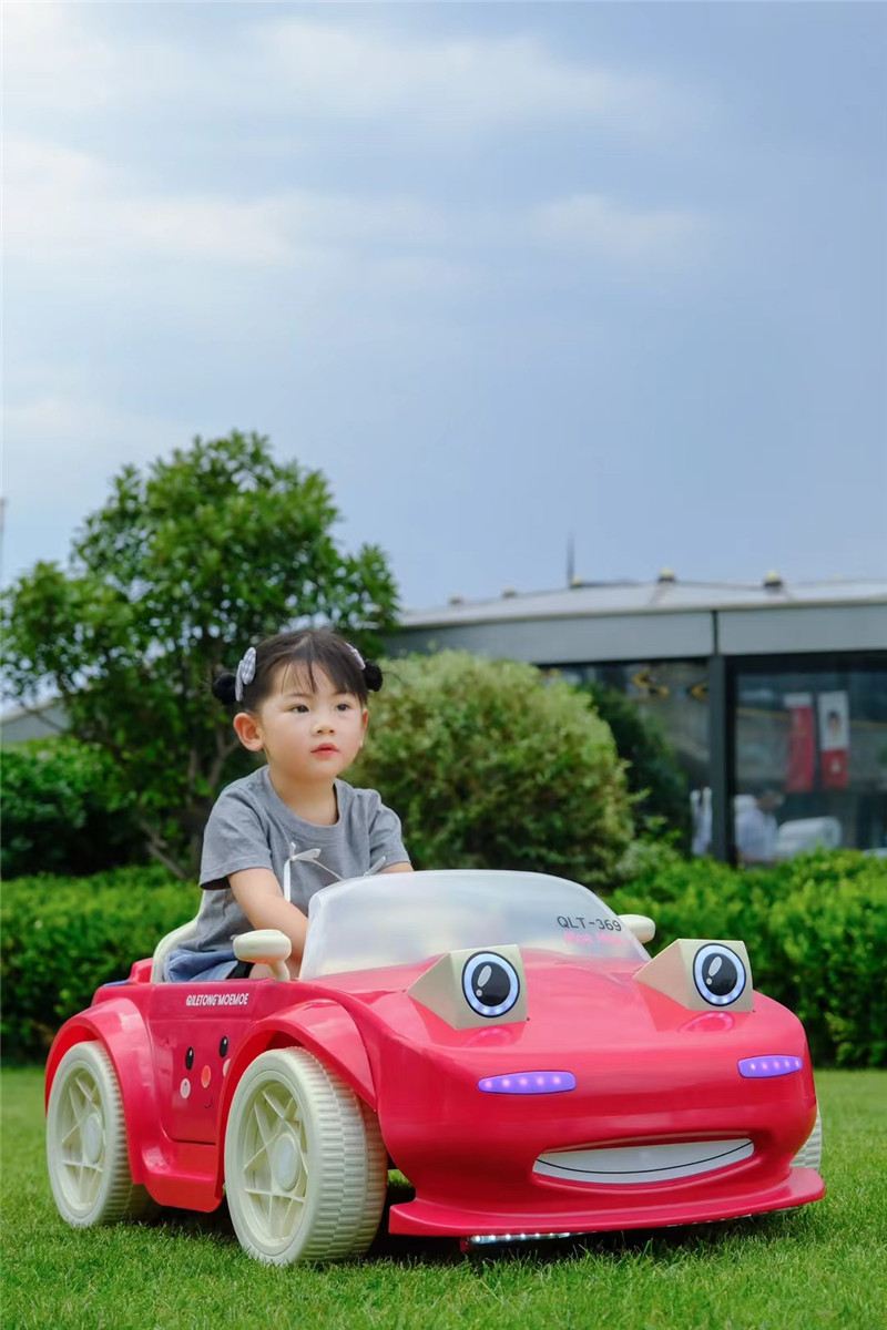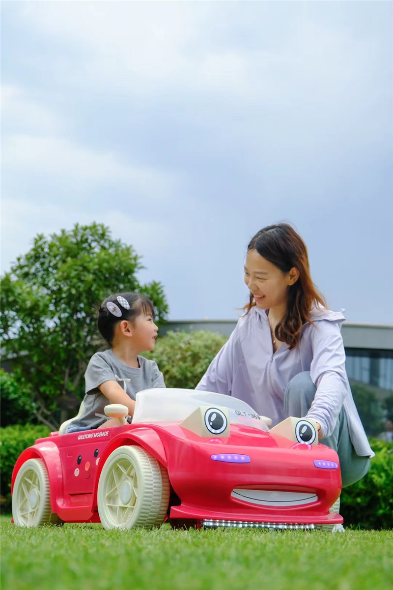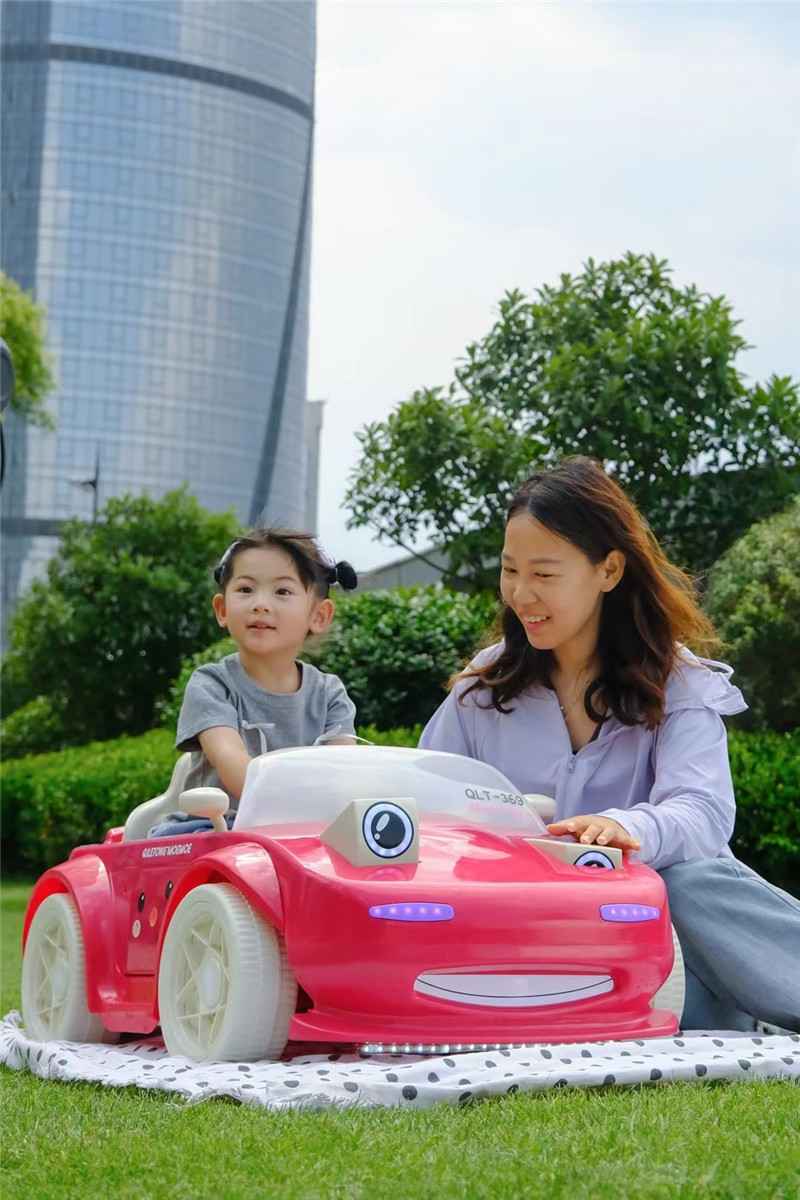 警车骑在汽车上遥控儿童电动车骑在女孩的汽车上小轿车