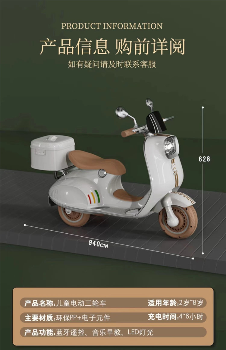 儿童电动摩托车玩具车可坐人2-6岁宝宝遥控车小孩充电三轮电瓶车