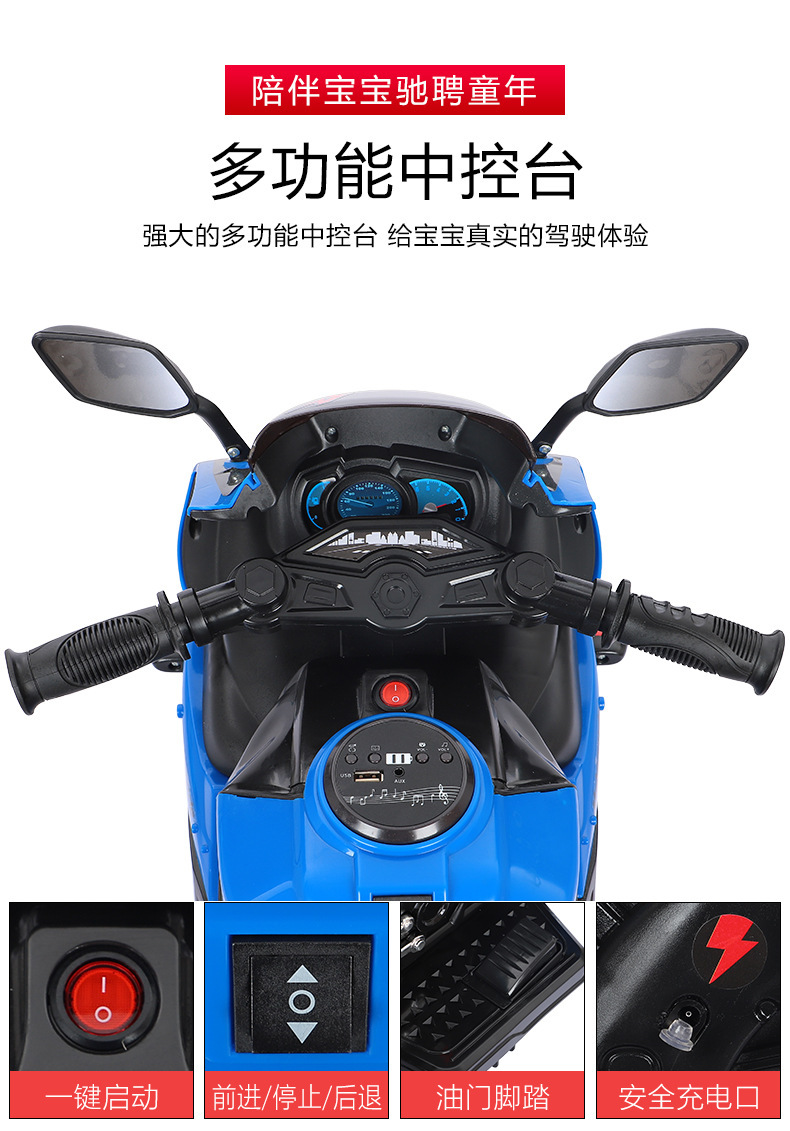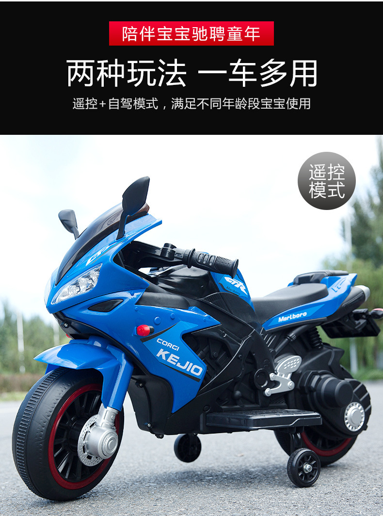 儿童电动摩托车充电三轮车宝宝电瓶车男女孩遥控木兰车可坐玩具车