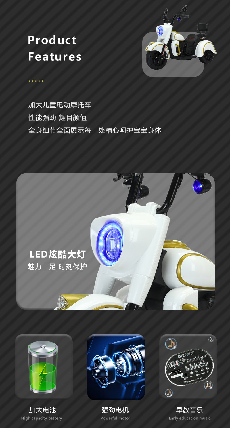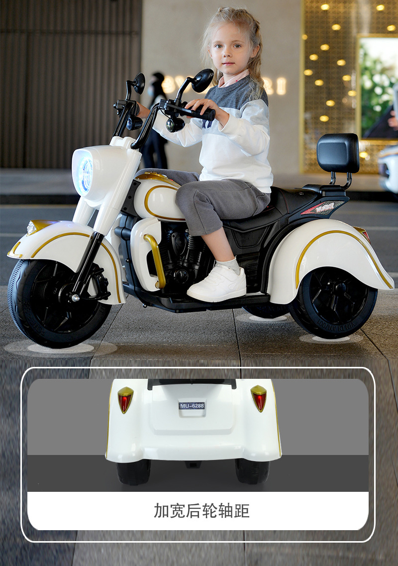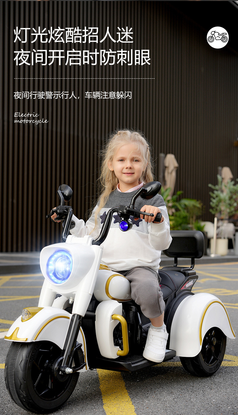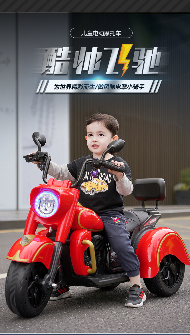 儿童电动摩托车三轮车男女孩宝宝电瓶车小孩可坐人充电遥控玩具车