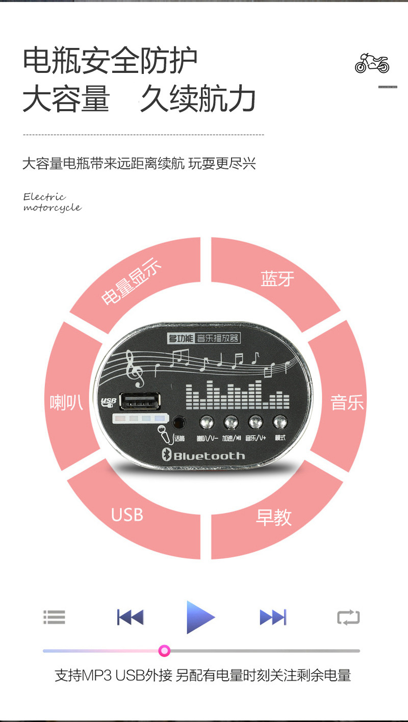 儿童电动摩托车可做大人带宝宝三轮车男女宝宝双人充电玩具亲子车