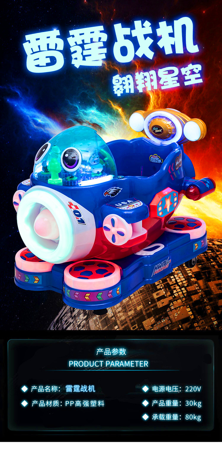 扫码新款儿童电动投币摇摇车雷霆飞机MP3叮当飞机摇摆机共享摇摇