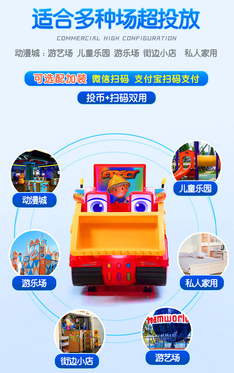 新款儿童电动投币MP5工程挖土机推土机扫码共享摇摇车摇摆机