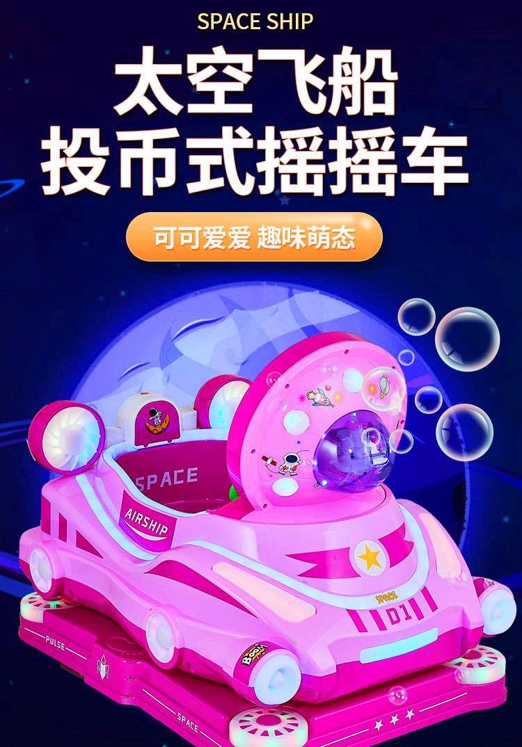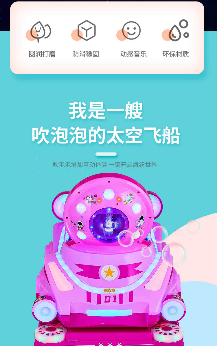 新款儿童电动投币吹泡泡MP5太空飞船摇摇车扫码摇摆机