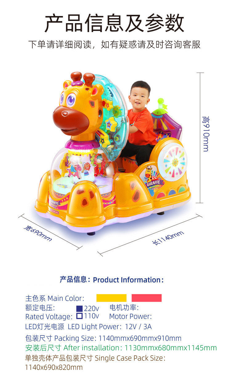 新款儿童摇摇车电动投币奇妙鹿乐园长颈鹿摇摆机