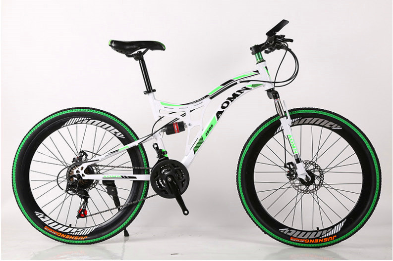 26寸21速 高碳钢车架 31.8管黑肩亮腿 黑日式边梯 三刀一体轮 恒奇彩双肩 天然胶 内胎 密封中轴 7片定位塔轮 雪地脚踏 卡式碟刹 仿禧玛诺30 仿禧玛诺50 仿禧马诺51-7