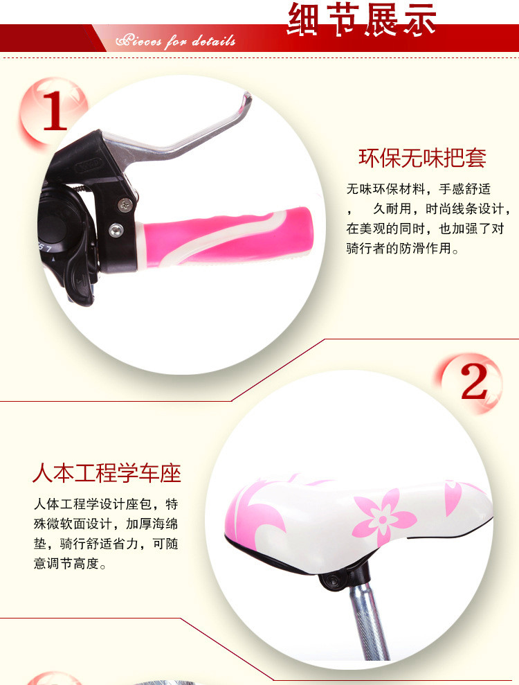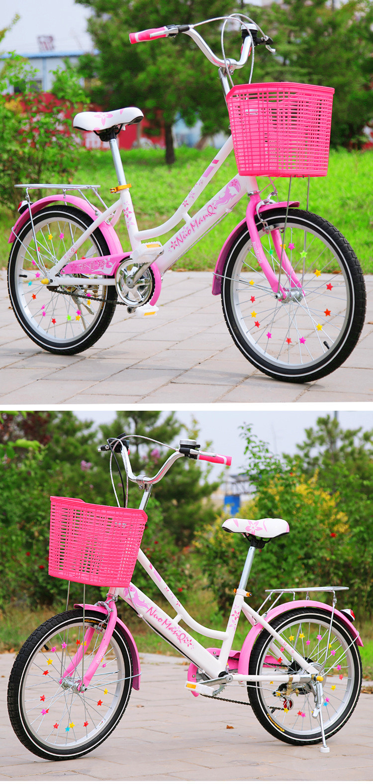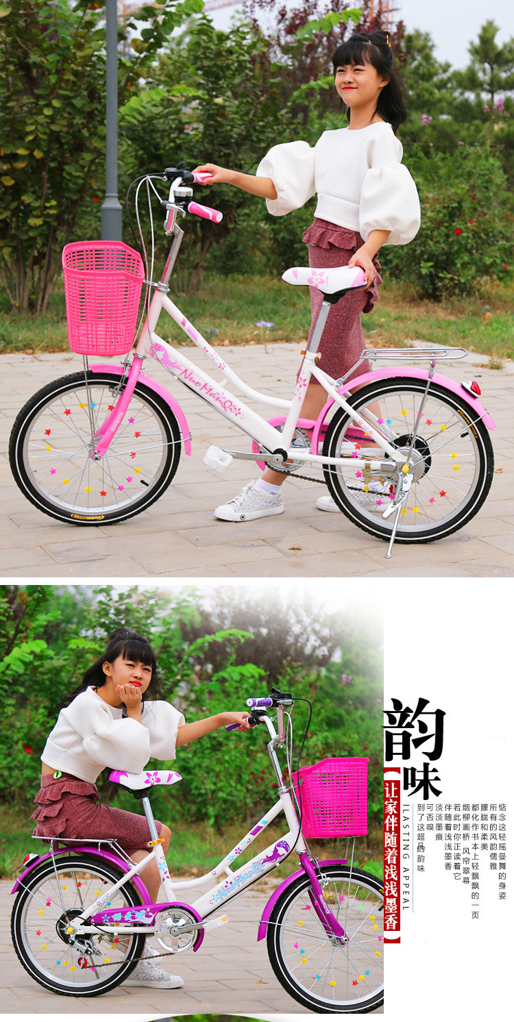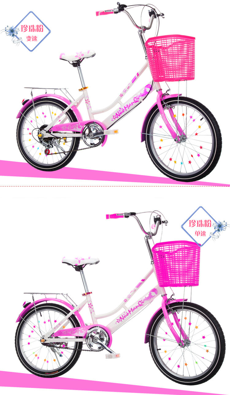 20寸单速裸车,单速,变速。22寸单速裸车,单速,变速。颜色:粉色,紫色