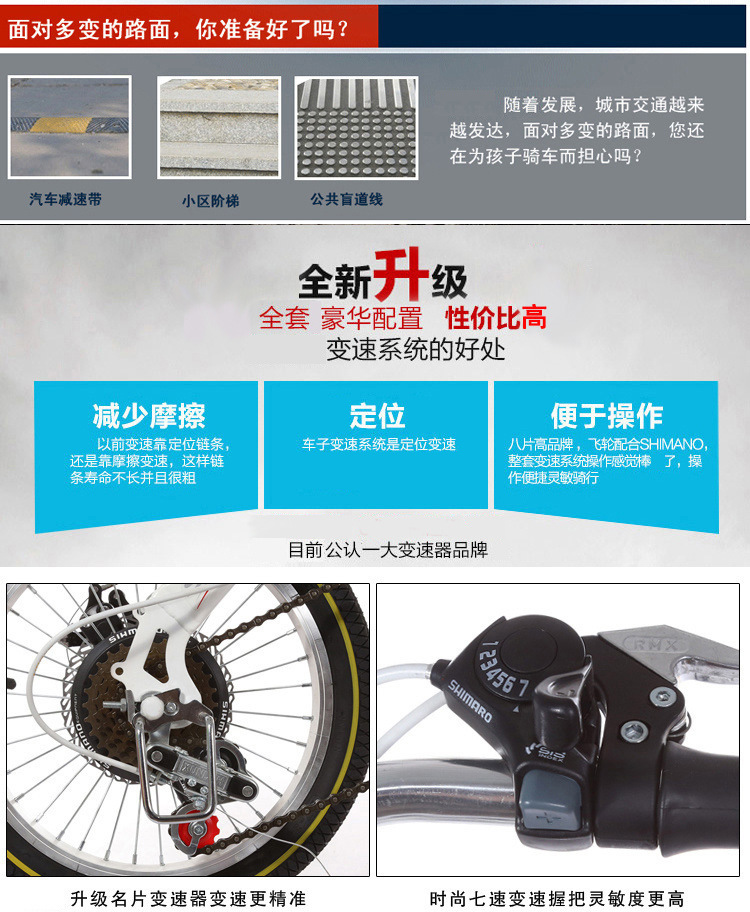 折叠自行车新款 成人儿童 自行车女式 自行车折叠变速18寸20寸
