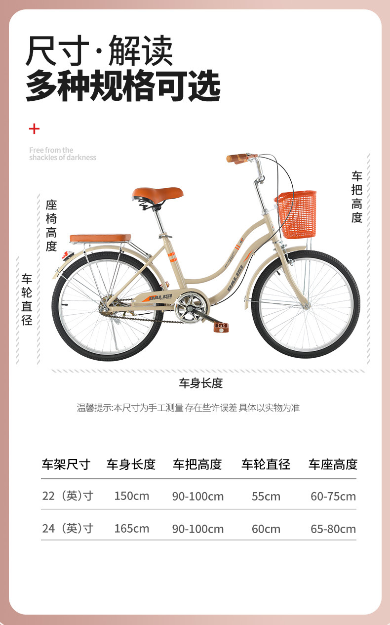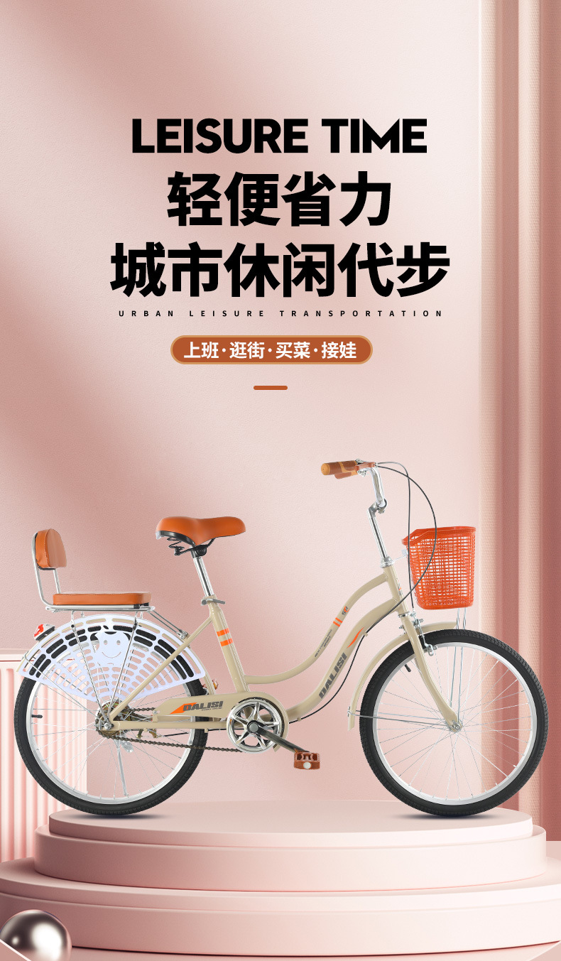 22寸自行车女式成年大人代步通勤车男女学生城市上班淑女单车24寸