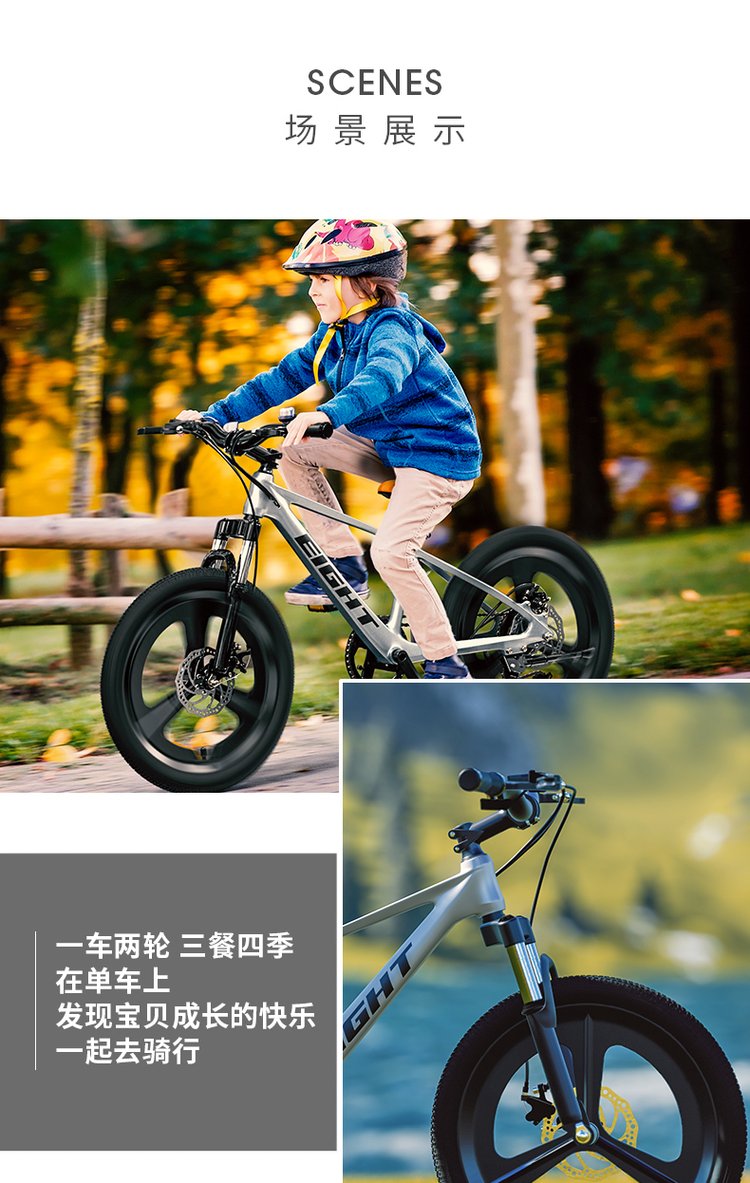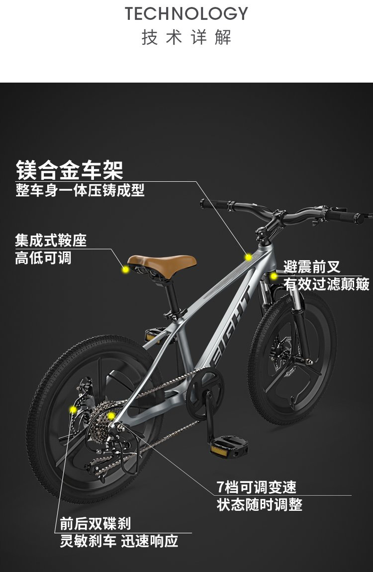 镁合金儿童自行车大童男女孩8-14岁20寸学生脚踏双碟刹变速山地车