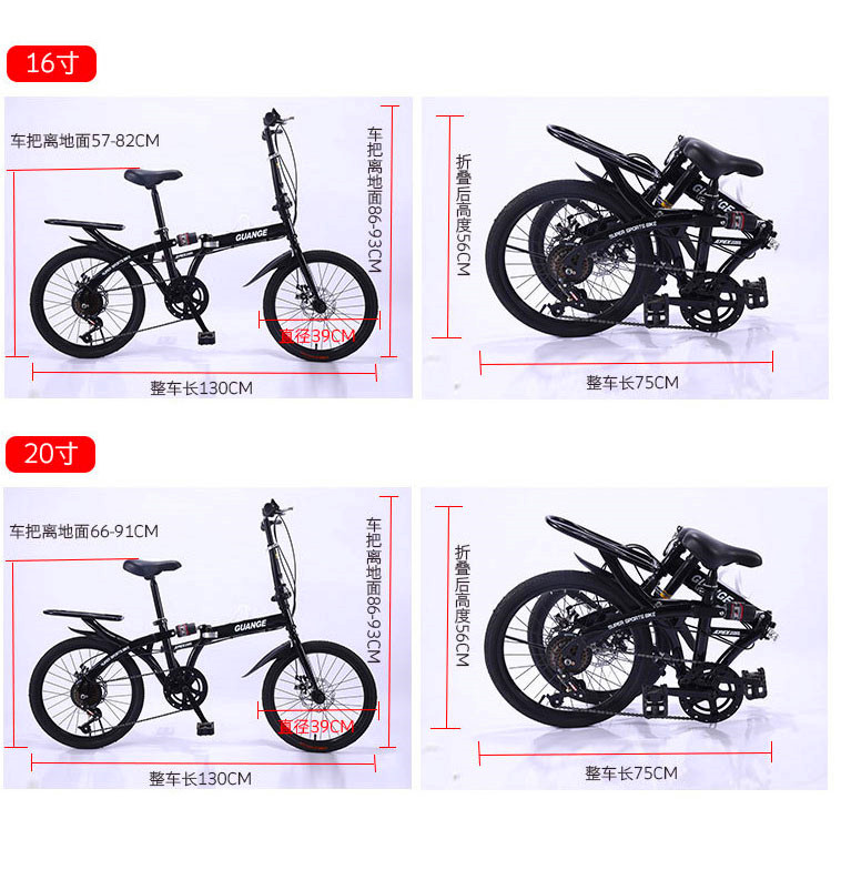 16/20寸双折叠自行车免安装变速减震成人学生男女轻快单车