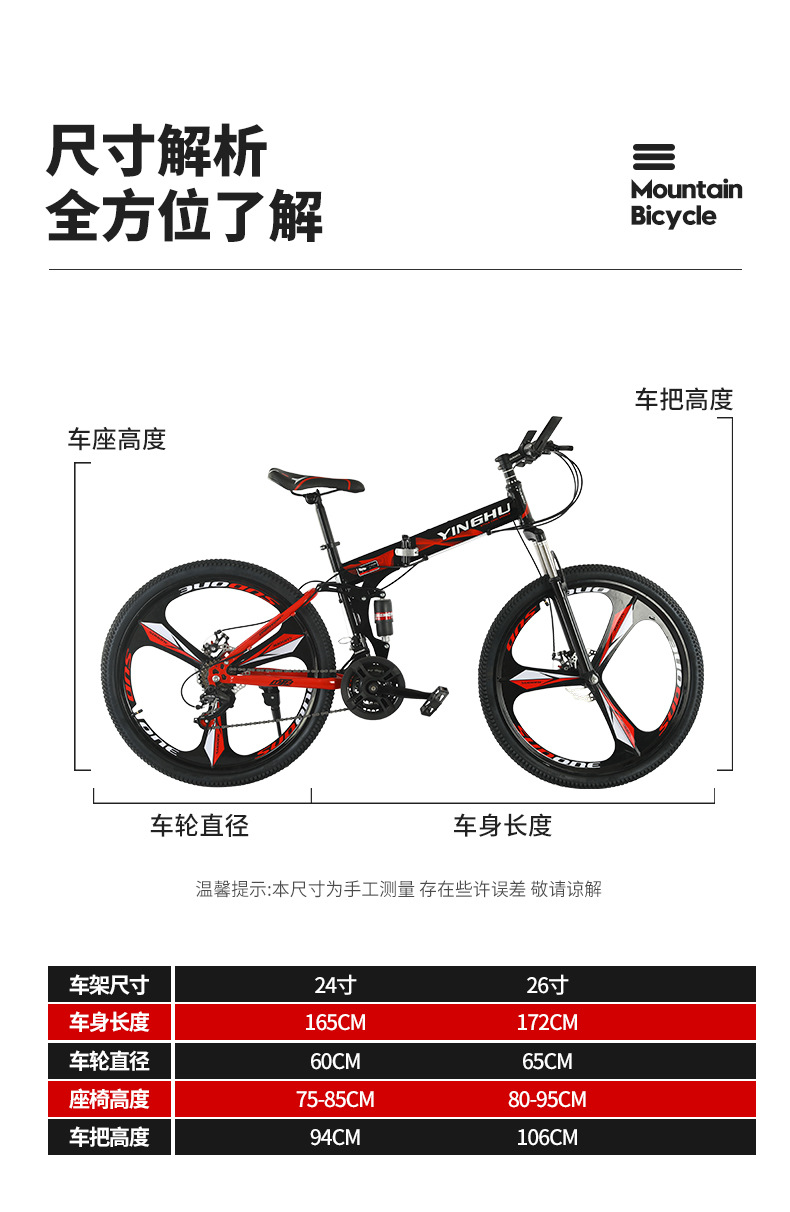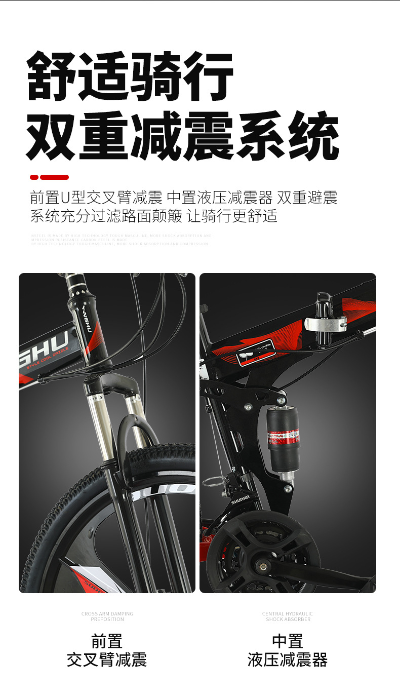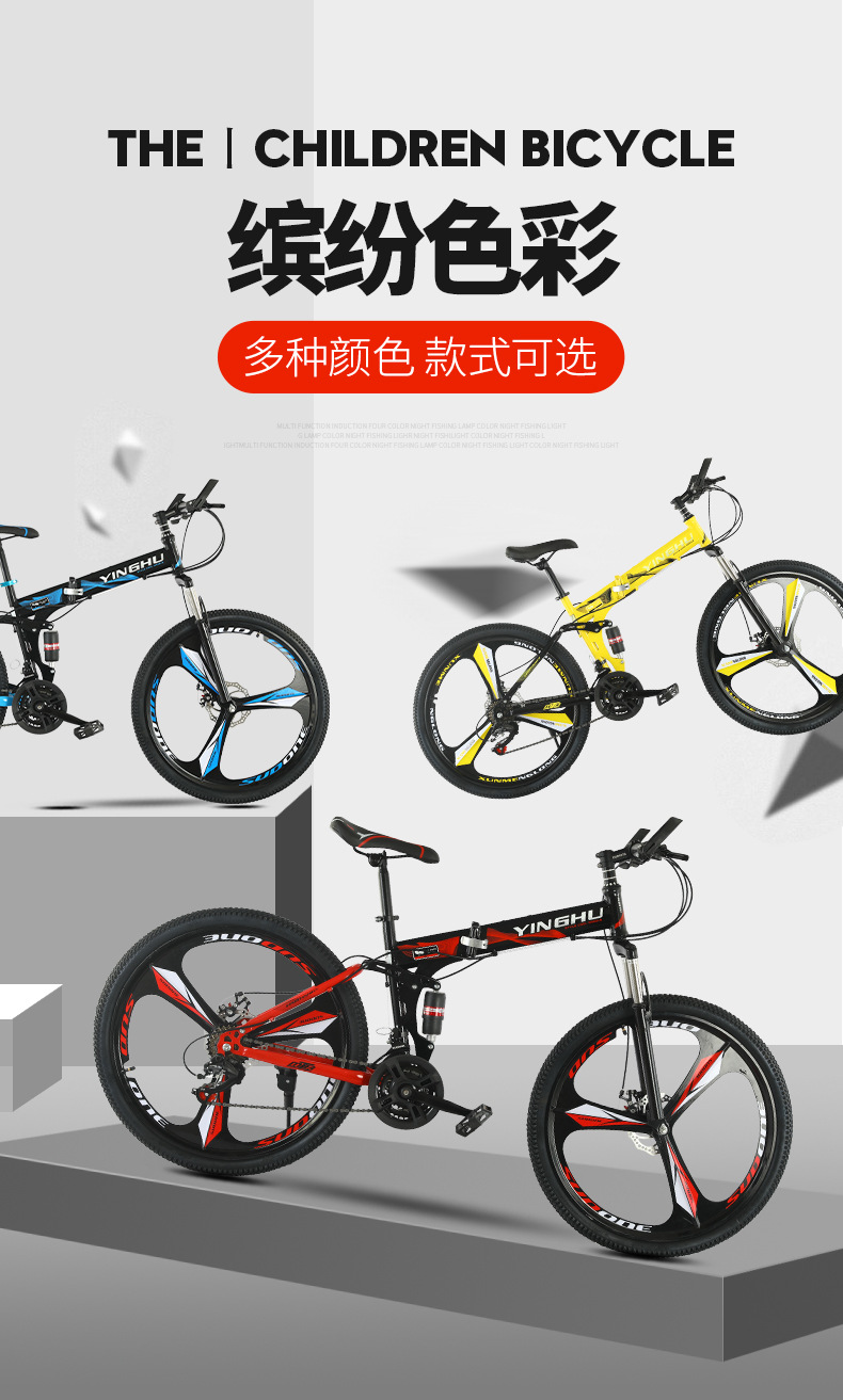 折叠自行车26寸变速减震单车bicycle碟刹学生山地自行车