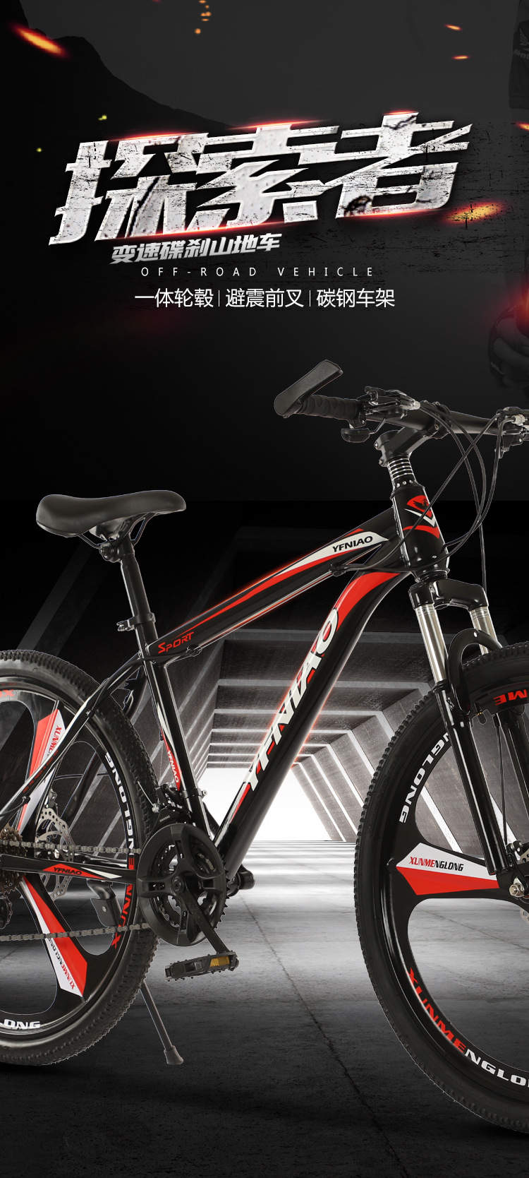 26寸山地车碟刹21速变速车学生自行车赛车成人山地车减震