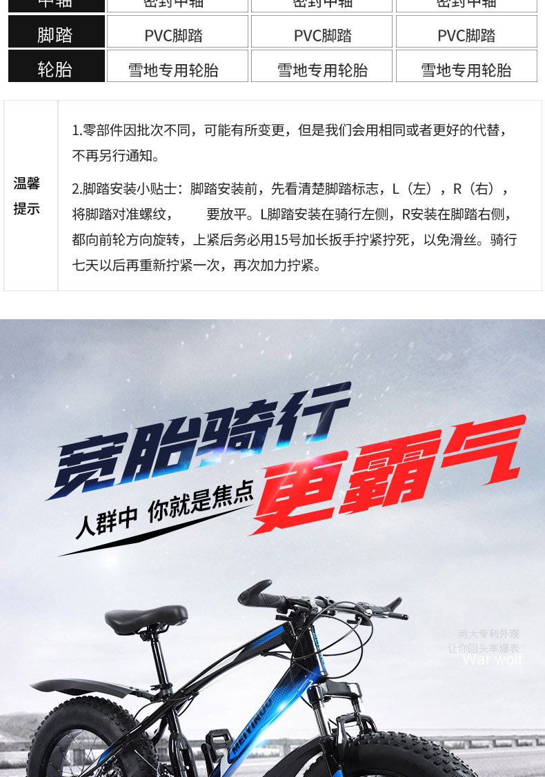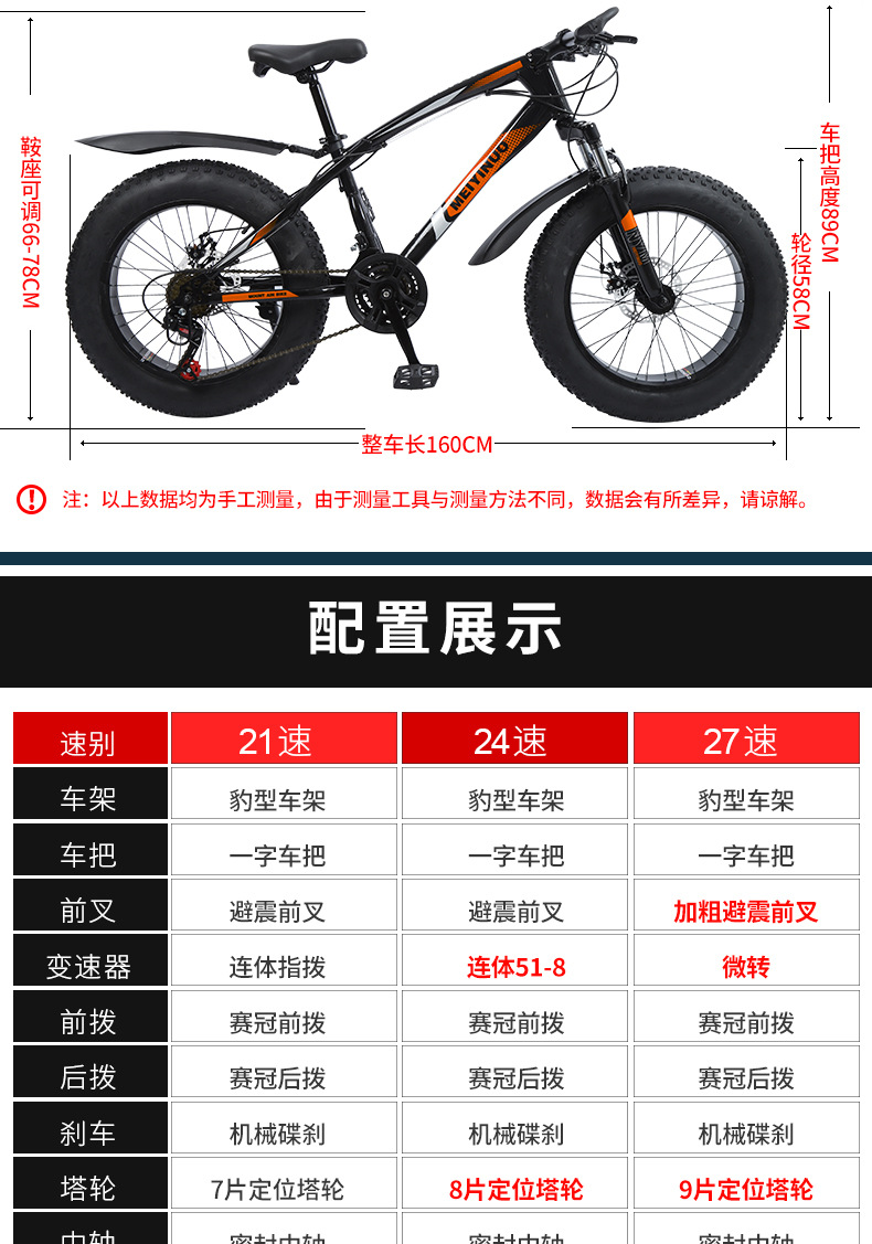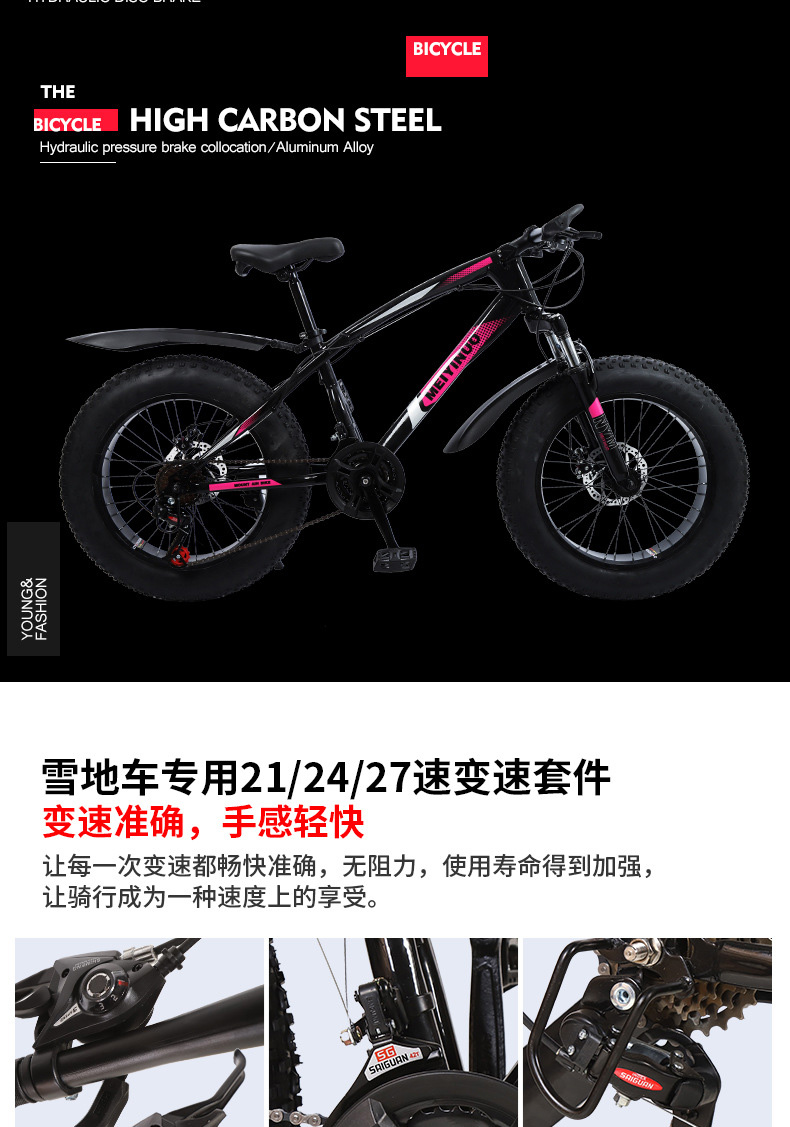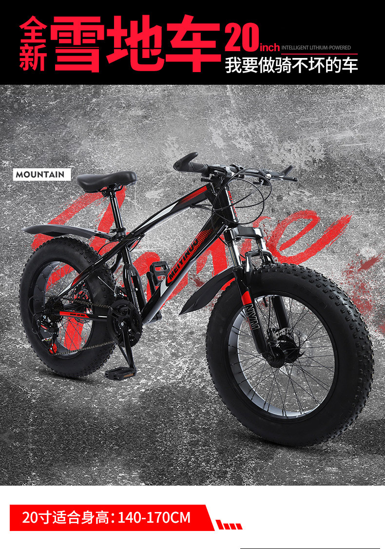 厂家供应20寸双碟刹4.0宽轮胎雪地沙滩车户外男女骑行越野自行车