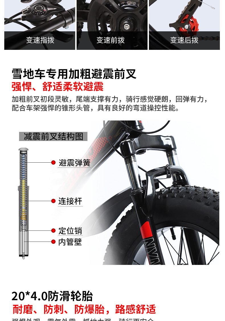 20寸:蟒蛇雪地车-黑红色/黑蓝色/黑橙色/黑紫色/白橘色-辐条轮