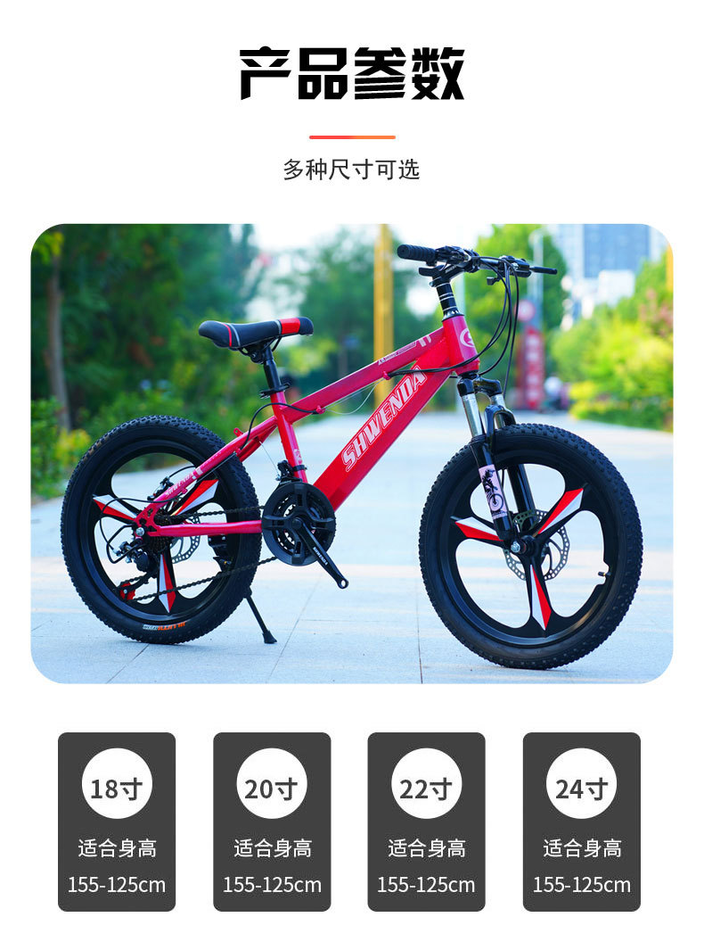 新款中大童山地自行车6-12岁中小学生单速变速碟刹20寸22男女单车