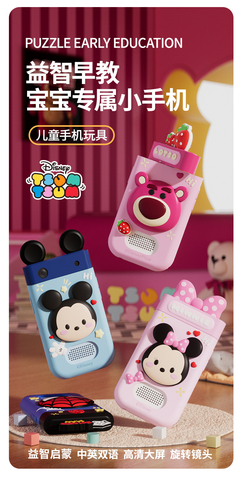 I9迪士尼 早教玩具180翻转拍照录像迷你相机益智儿童触屏智能手机