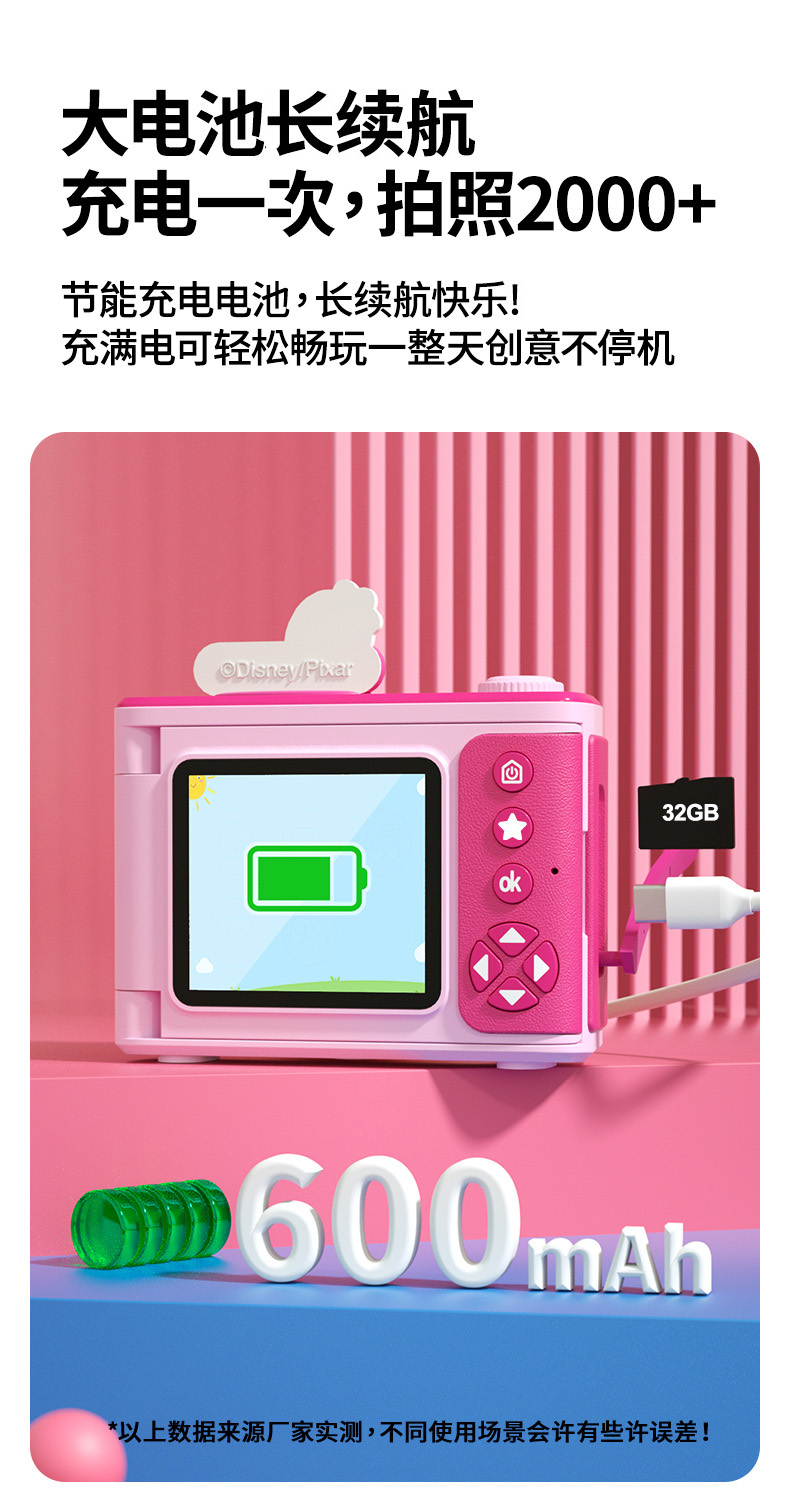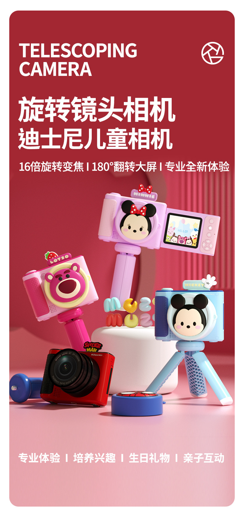 迪士尼 4800W高清双摄学生礼物卡通相机迷你儿童数码相机拍照录像
