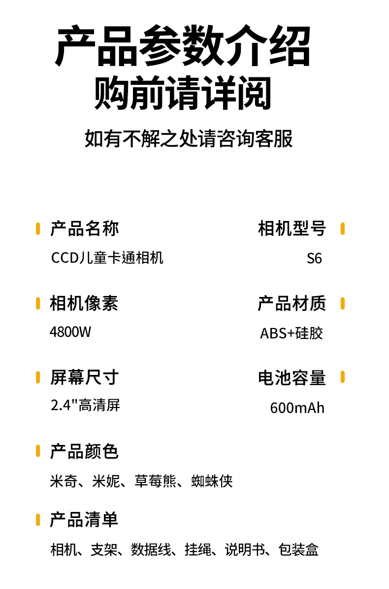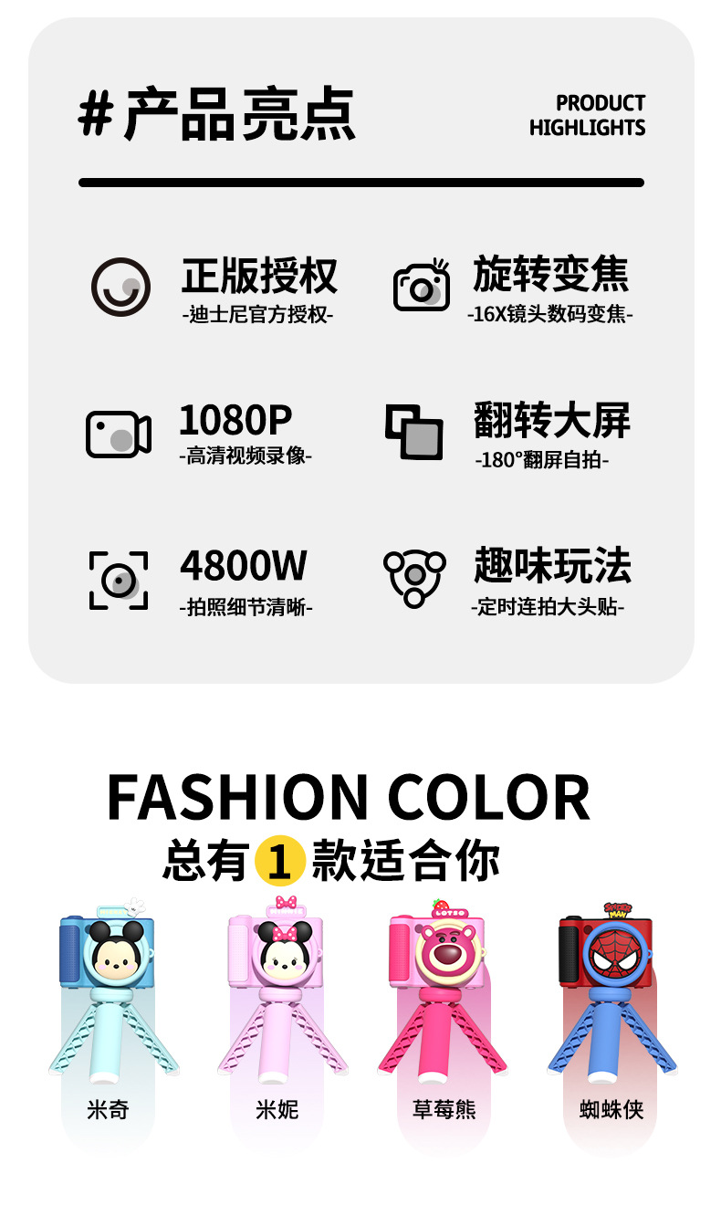 草莓熊/米妮/米奇/蜘蛛侠(支架、相机、数据线、挂绳、说明书、包装盒),草莓熊/米妮/米奇/蜘蛛侠相机、数据线、挂绳、说明书、包装盒)