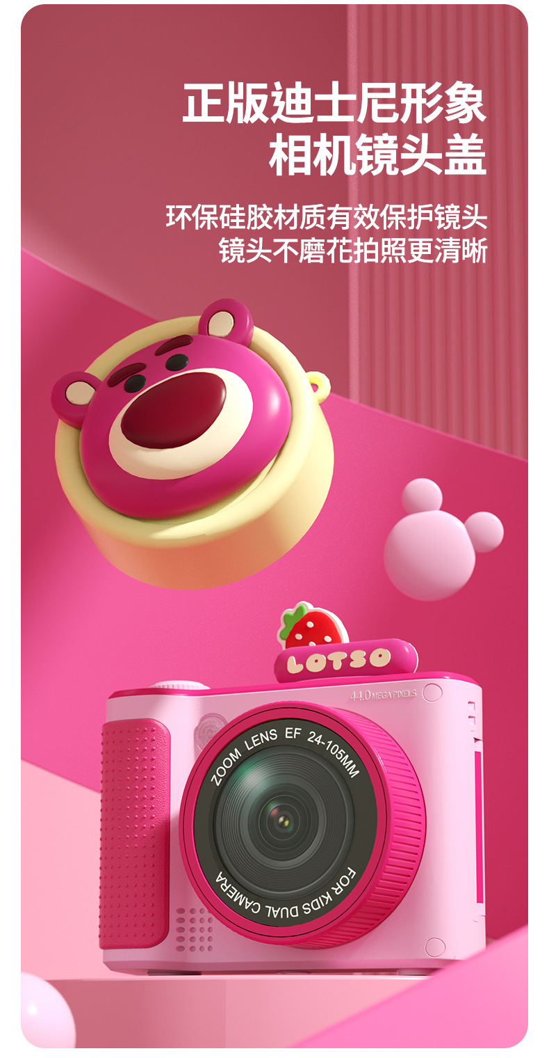 迪士尼 高清拍照录像双摄卡通数码支架照相机草莓熊智能儿童相机