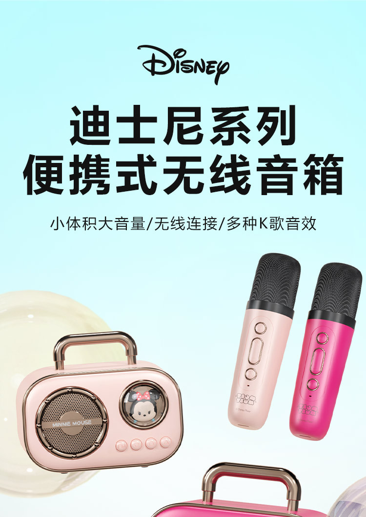 Disney/迪士尼蓝牙音响高音质无线带话筒家庭卡通儿童K歌对唱音箱