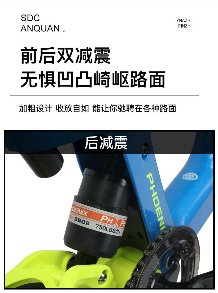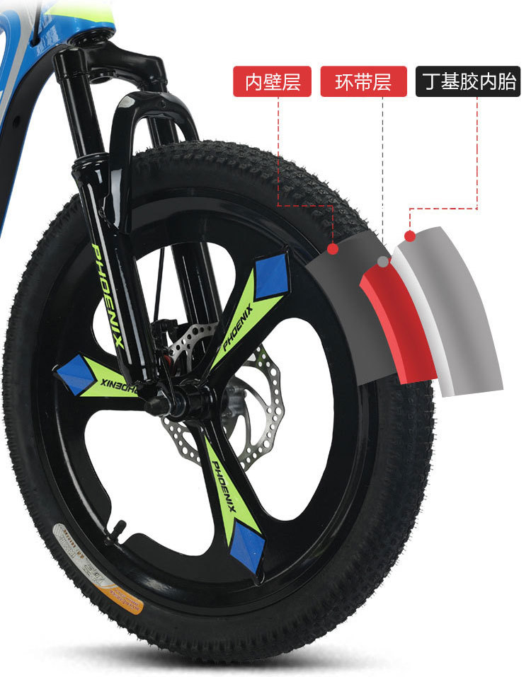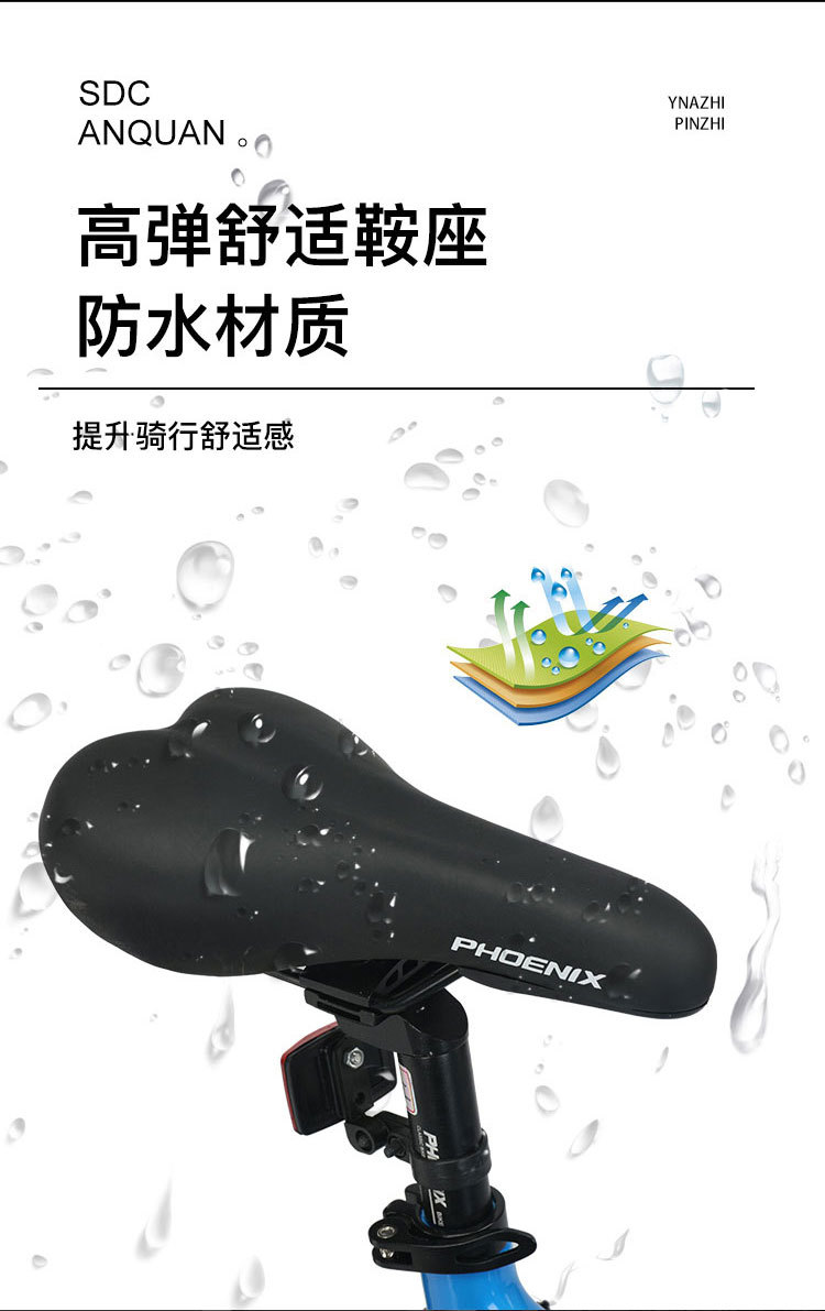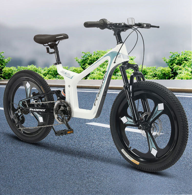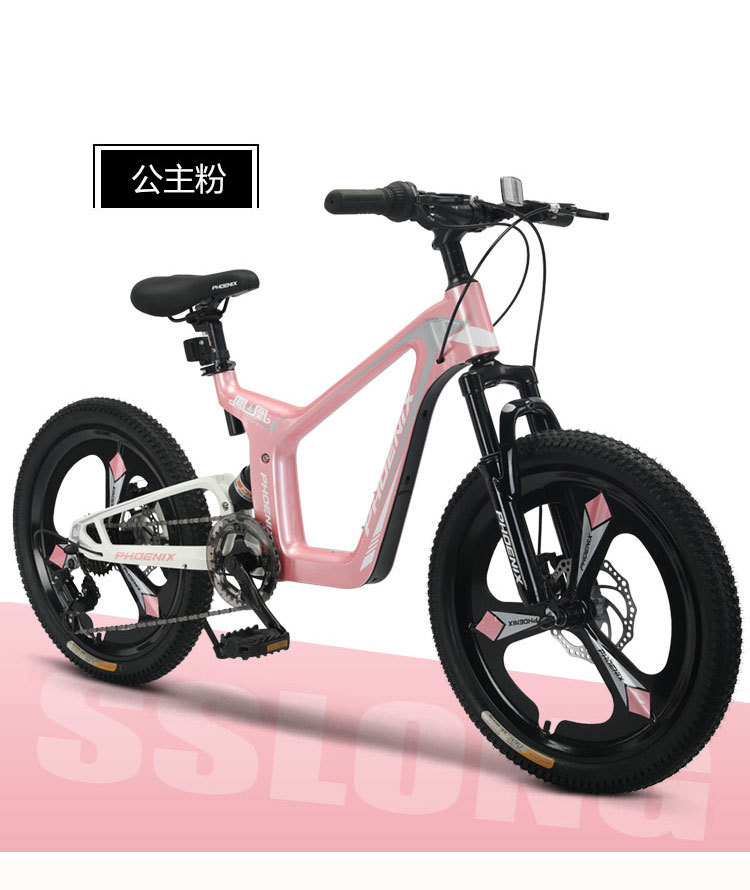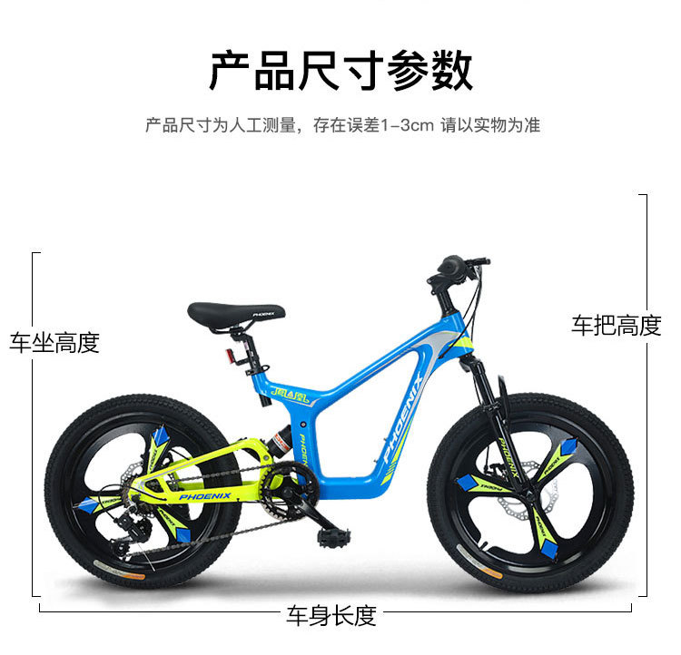 凤凰儿童自行车中大童男孩女孩镁合金软尾减震学生山地脚踏变速