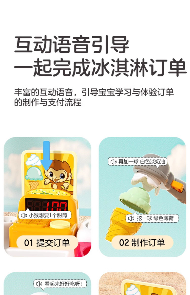 2P80双语雪糕车山姆冰淇淋玩具过家家儿童礼物售卖冰激