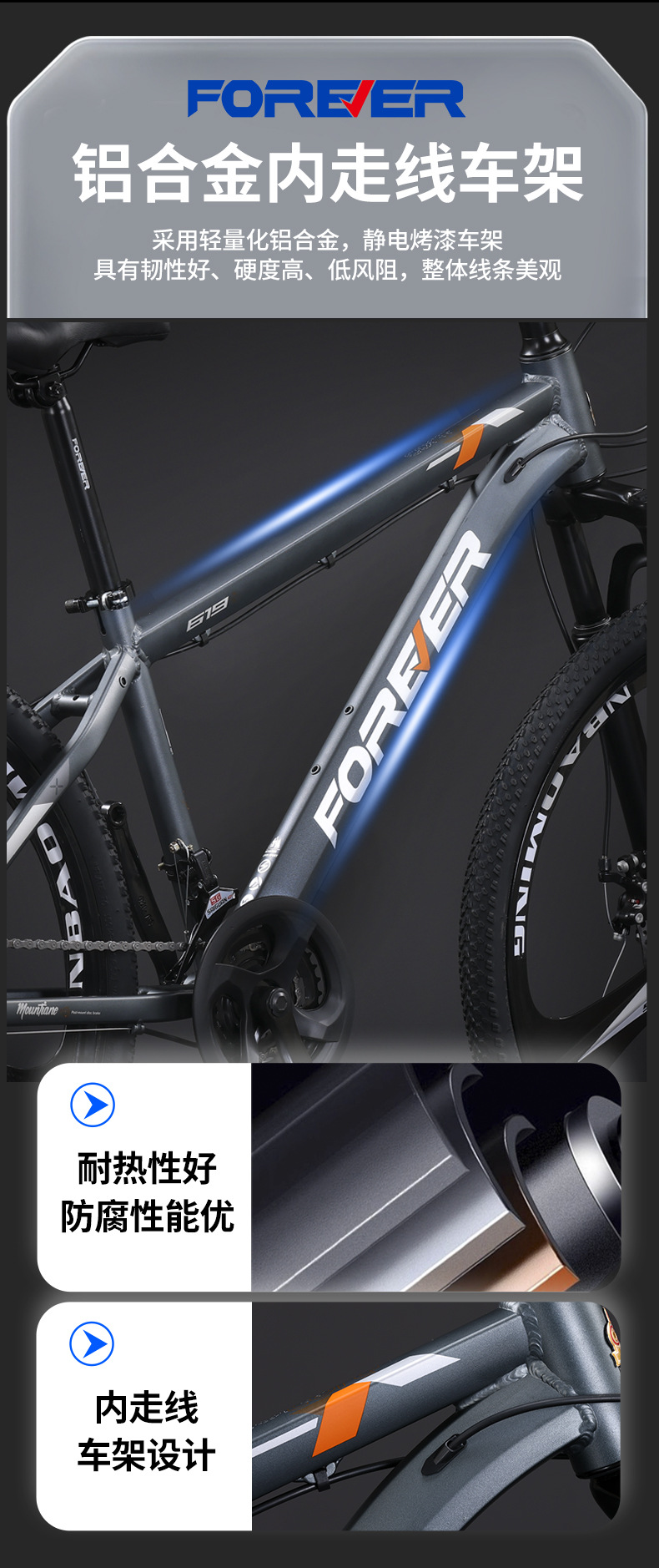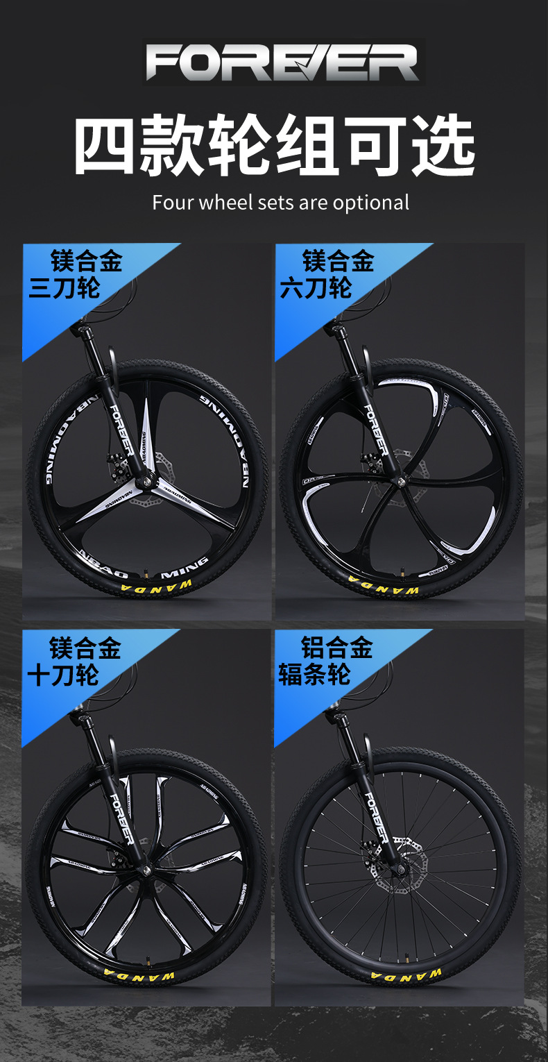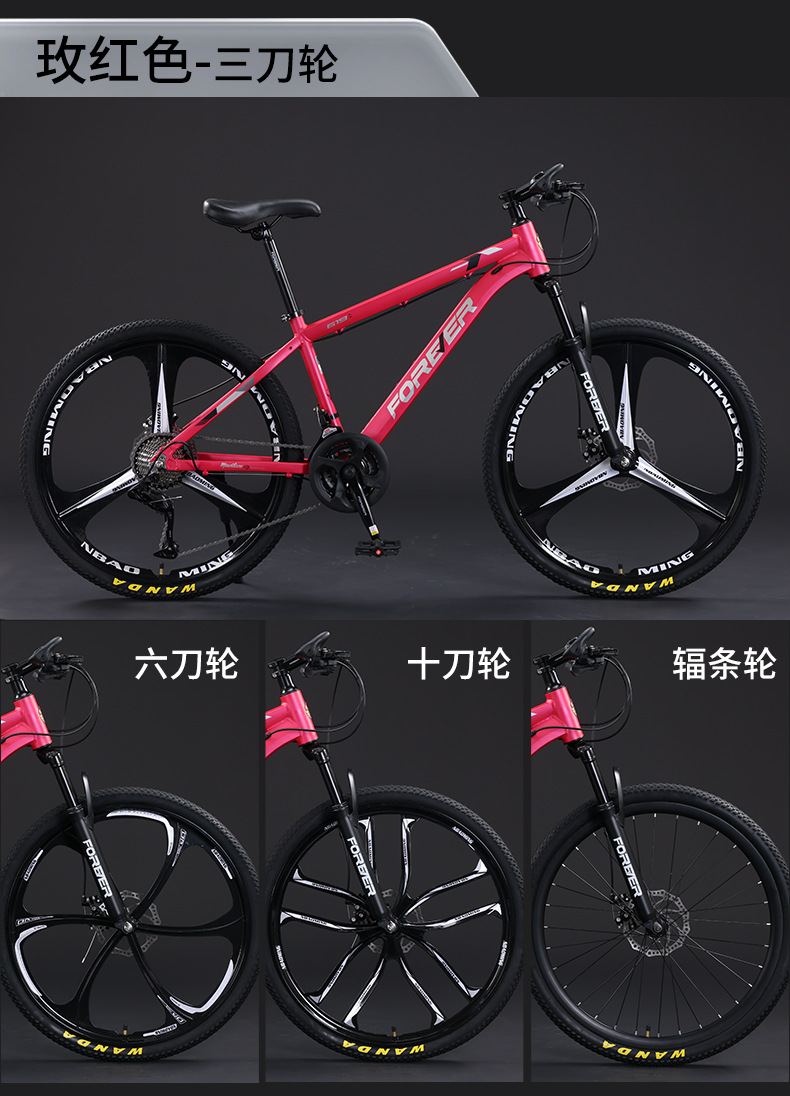 Rose red, rock gray, bright moon white, plum sauce purple, dark gray orange, dark black and red.Steel frame - spoke wheel, three-blade wheel, six-cutter wheel, ten-cutter wheel.Thickened aluminum frame Thickened aluminum frame.24 inch, 26 inch, 27.5 inch 21 speed, 24 speed, 27 speed, 30 speed