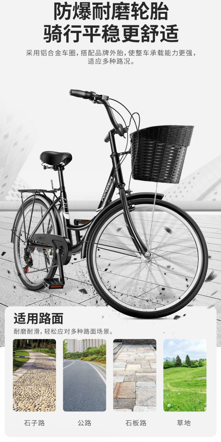 永久牌自行车女款轻便24寸26轻便成人通勤单车城市代步大学生上班