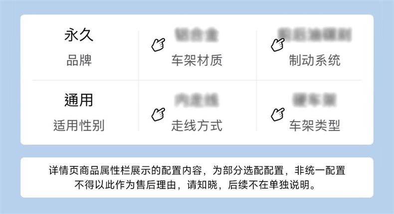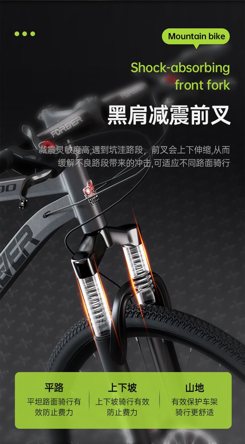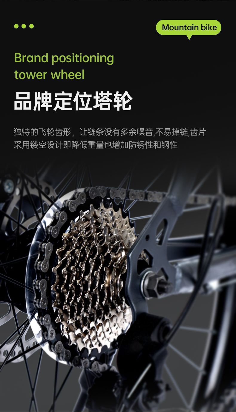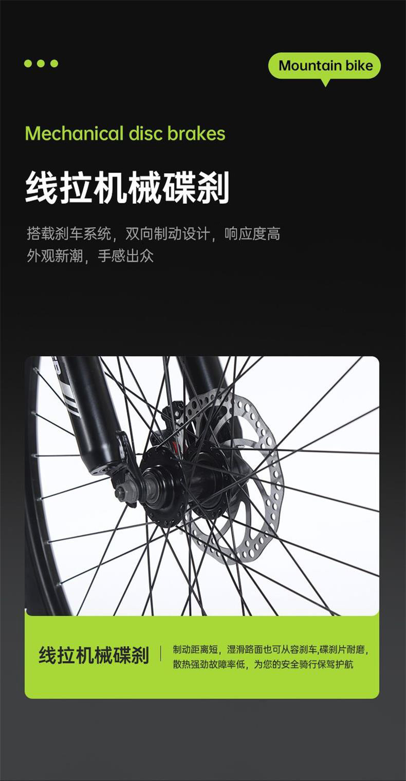 材质:高碳钢 车架类型:硬车架刹车类型:前后轮V闸前叉类型:弹簧叉(低档无阻尼) 配置等级:迷你型载重量:70kg 制动系统:前后线碟刹脚踏类型:普通脚踏 轮圈材质:铁质适用性别:男女通用 速别:18速适用人群:通用