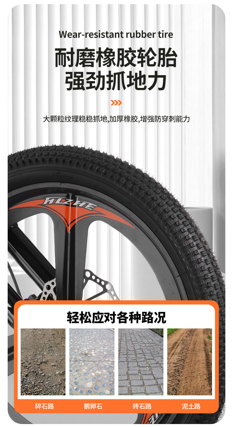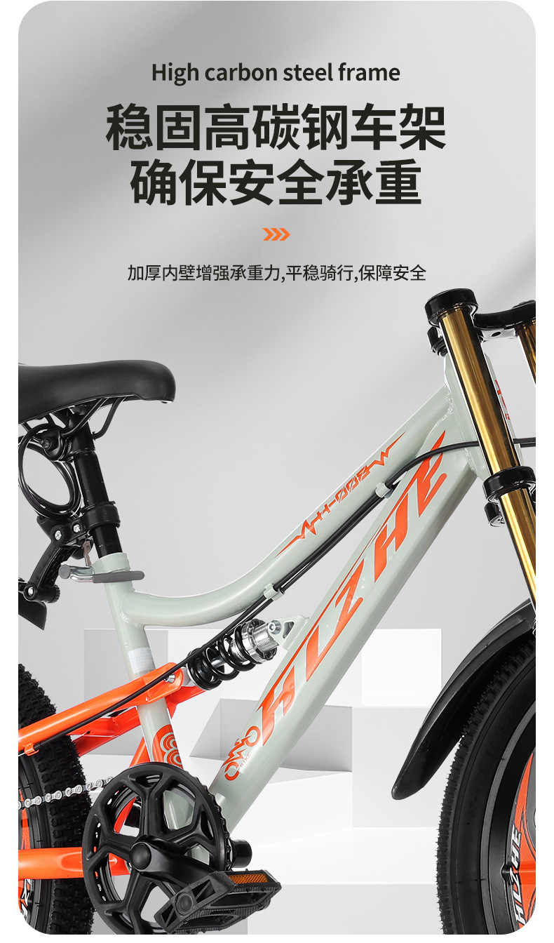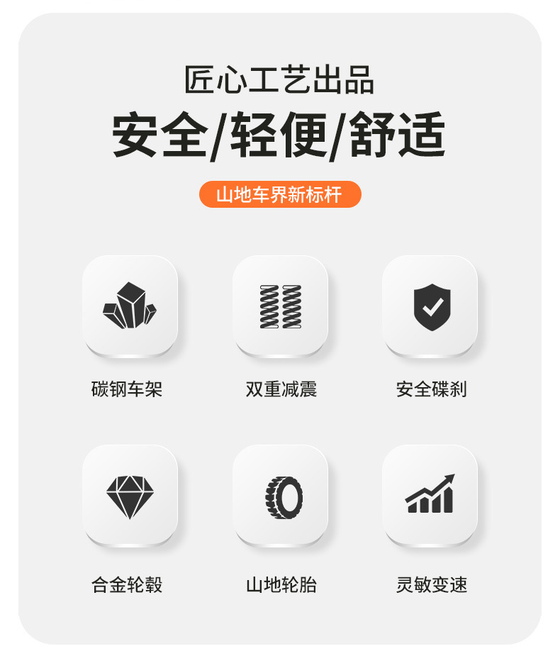 材质:碳钢车车架结构:整体车推进模式:链条载重量:100kg车架类型:硬车架前叉类型:弹簧叉(低档无阻尼)脚踏类型:普通脚踏制动系统:双碟刹刹车类型:后轮碟刹配置等级:标准型样式:双减震