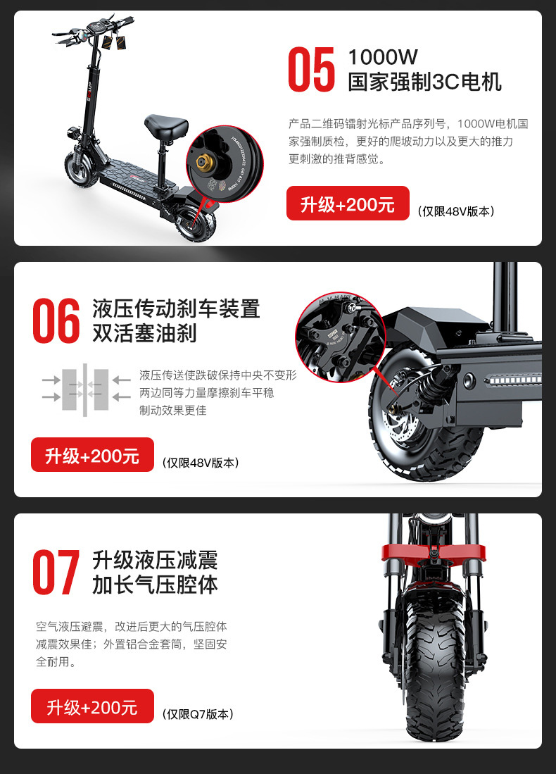 Q5/36V朝阳真空胎/金宇星电机/【30-35km/35-50km/50-60km/70-80km/100-115km。Q7/48V/彩屏仪表/越野防爆真空胎/40-50km,Q7/48V/宽屏转把