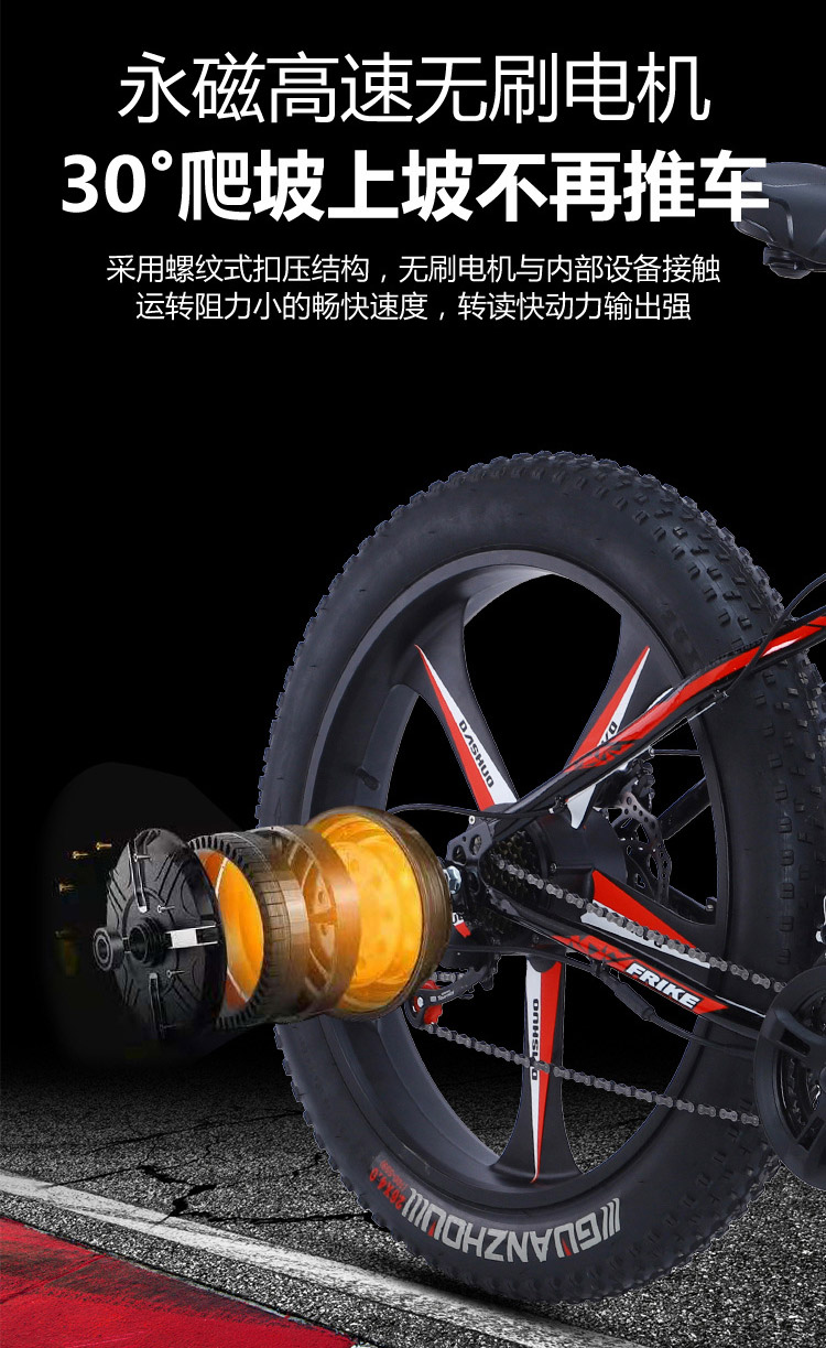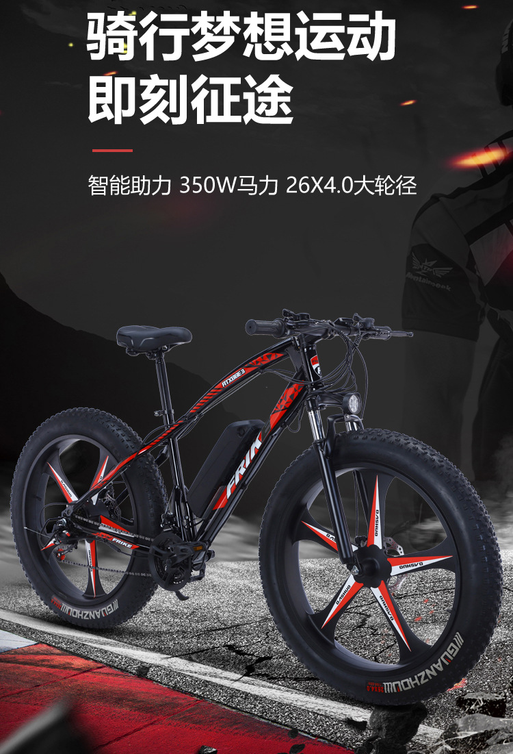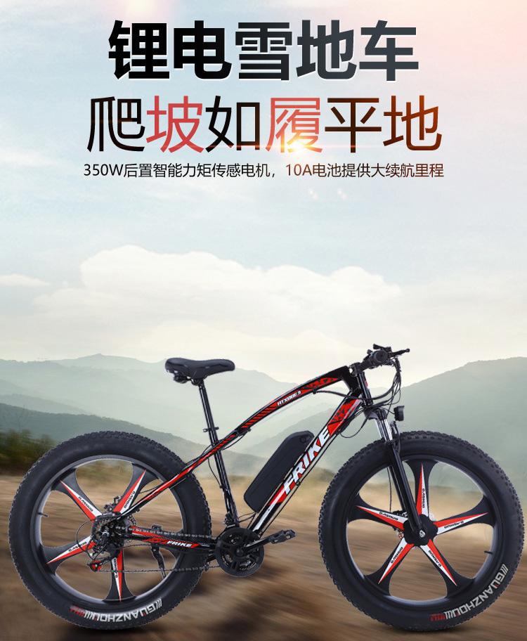 电动山地自行车助力锂电雪地车一体轮变速沙滩单车