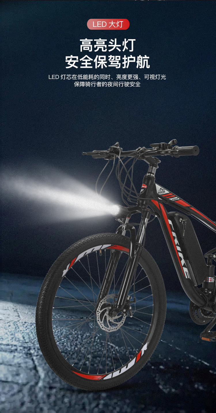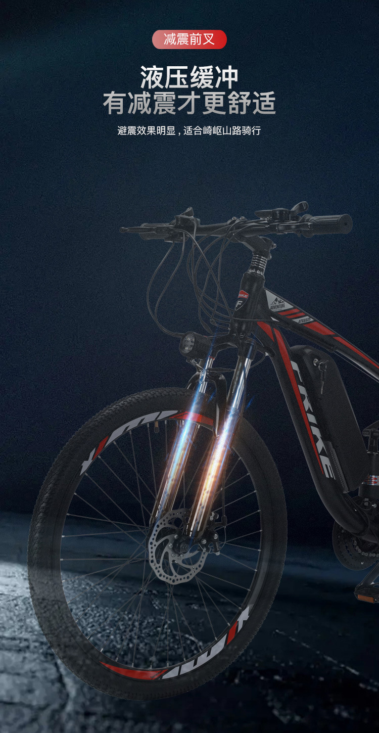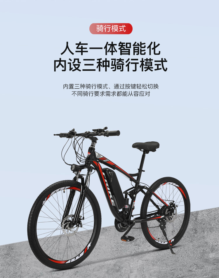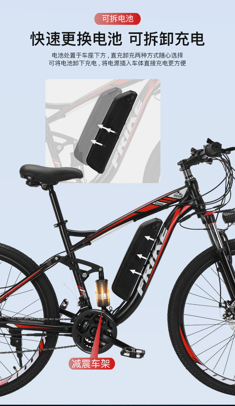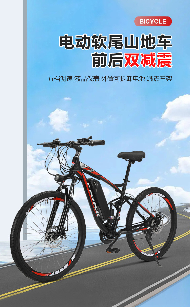 电动软尾山地自行车锂电双减震越野变速助力车速降电动车