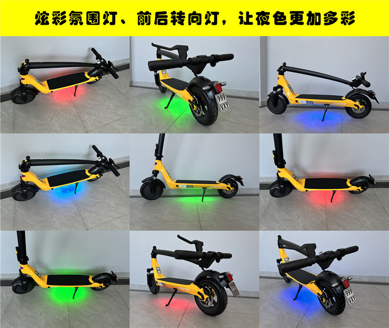 产品类别:电动滑板车适用人群:通用规格:8.5寸车轮材质:橡胶车体材质:铝合金车轮个数:2轮充电时间:4-6H电池容量:6.6/8.8/10.4高时速:30(km/h)带转向灯款、车身氛围灯 前减震