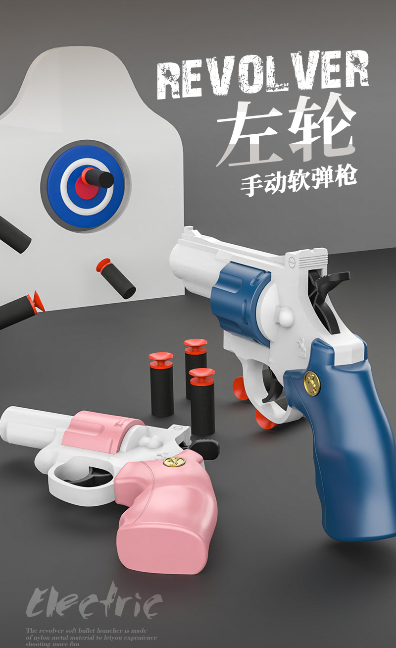 左轮软弹枪电动男孩发射器手动抛壳小手枪儿童玩具软弹枪