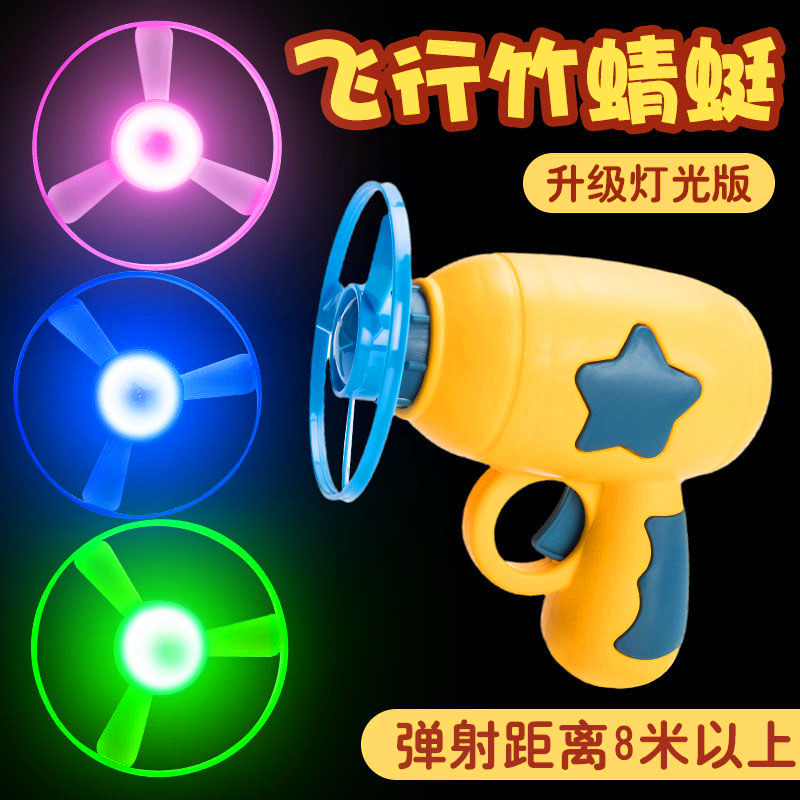陀螺枪竹蜻蜓手枪户外发光弹射旋转儿童飞行玩具夜市地摊货源