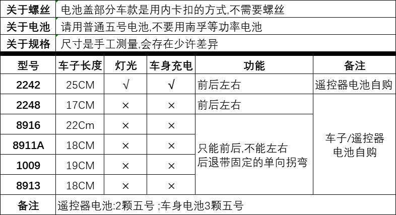 8913#小号二通遥控车,109#二通遥控车1:24,8911#二通方向盘遥控车1:24,2242#四通方向盘遥控车含充电,05#四通方向盘遥控车1:18