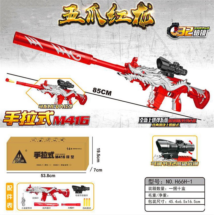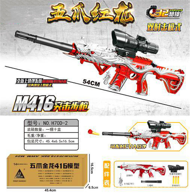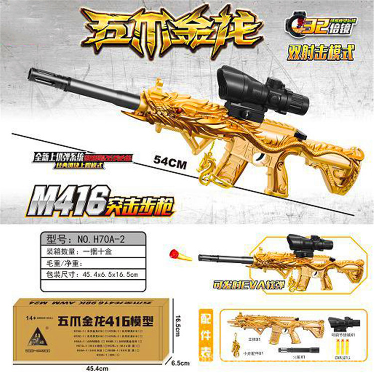 五爪金龙手拉软弹枪突击步枪皮肤版m416吃鸡装备男孩玩具枪