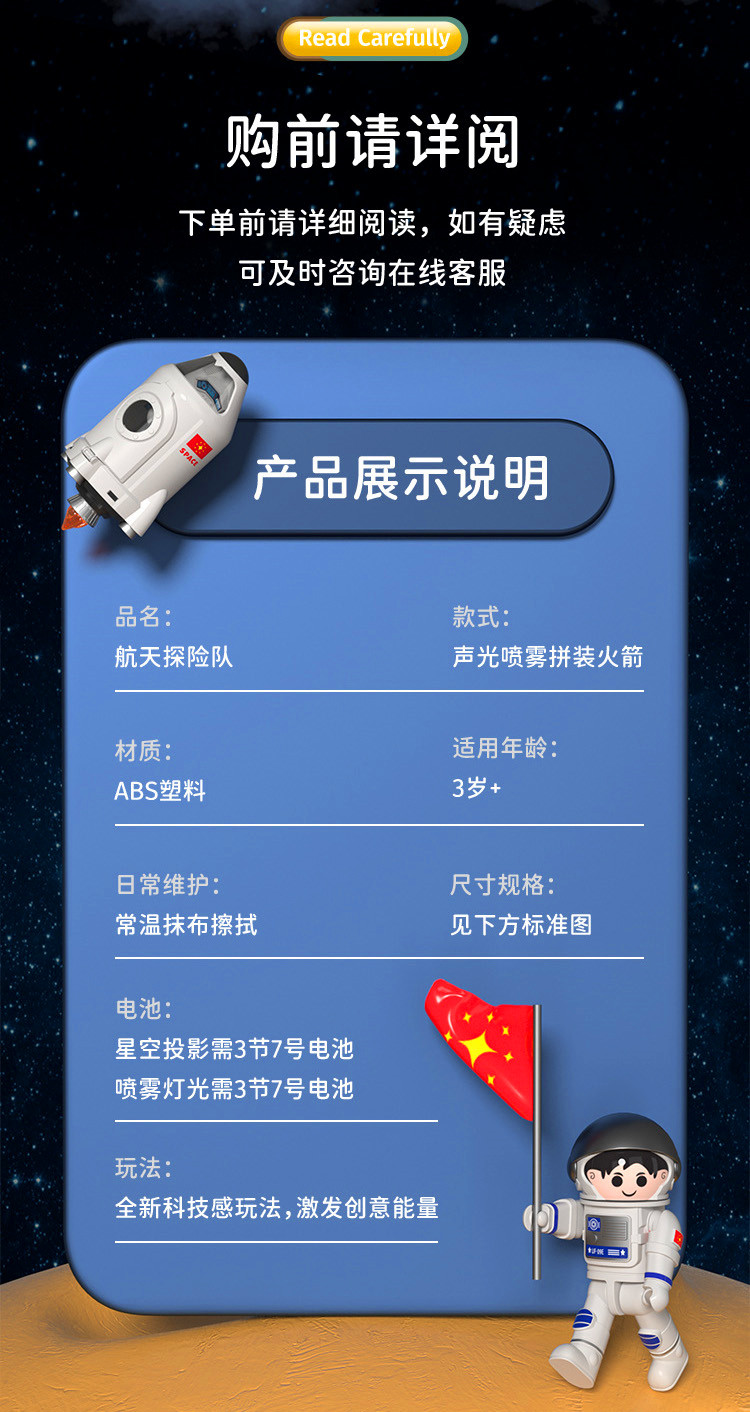 大号儿童玩具火箭发射航天飞机火箭玩具儿童可投影可喷气宇宙飞船