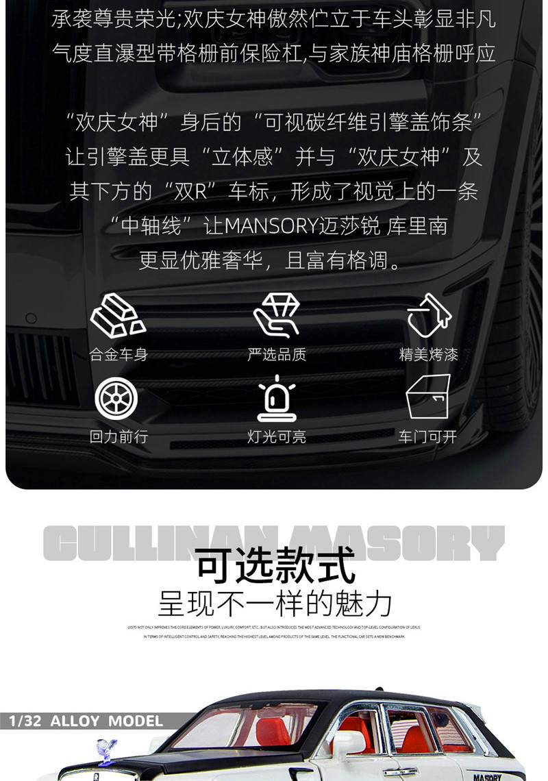 1/32仿真合金声光回力儿童玩具汽车模型摆件劳斯库里南迈沙锐莱斯