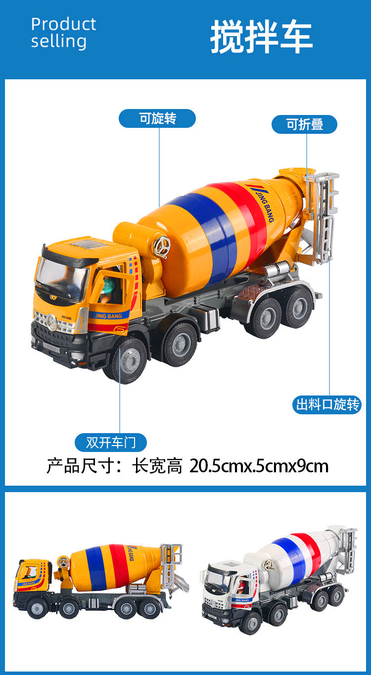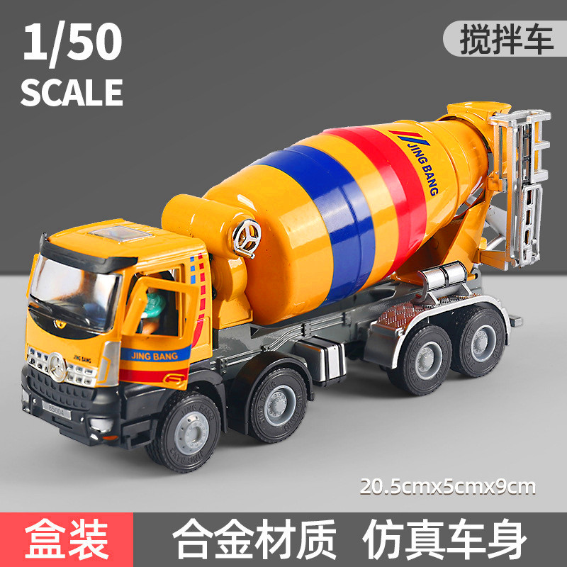 混凝土搅拌机模型仿真滑行玩具盒装1/50大号合金工程车